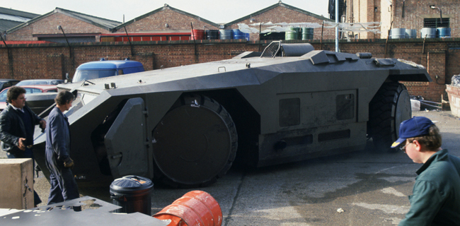 DeanO wrote on 11/15/00: I know that the interior of the APC won't fit into the exterior of the real thing but I have the 1/35 scale kit and when I finally get around to building it I'd like to do it with the doors open showing a reasonalbe fascimile of the interior. Does anyone know if there drawings of how the interior set was arranged? I've watched and watched and it's really hard tog et an idea of how everthing fits together in there. Keeping in mind of course that it really wouldn't fit. Later, Dean fdoveraker@worldnet.att.net home.att.net/~fdoveraker/ ------------------------------------------------------------ Faramir66103 wrote on 11/15/00: It seems to me that the prominent feature of the interior of the APC is the Comand and Control console. This is the console that Gorman sits at and is situated opposite the sliding door, on the drivers side, behind the front left wheel well. Ripley and Burke sit in two seats on the passenger side, forward of the sliding door, but behind the right front wheel. The other marines are seated along both sides. This is contrary to what's stated in the Brincombe book. If I remember right, it states that the Command and Control console is situated along the rear wall of the APC, which makes more sense to me in a practical vehicle. You wouldn't want your commander to be vulnerable to incomming fire or other battlefield hazards that could come in the door as his troops are embarking or disembarking. The drivers area is more difficult to make out. From what I remember, the driver is on the left side of the vehicle, in front of the left front wheel well. His controls seem to be a kind of split lever arrangement with pedals. I don't recal ever seeing a passenger side seat forward of the right front wheel, though it would make sense to me that there could be a seat there for a forward gunner/navigator to run the front gun and assist the driver while the commander manages the platoon and top gun turret from the rear compartment. This is all from memory, so if someone has better info, please chime in and correct me. HTH, Adam Jacob "Faramir" adamjacob@mac.com ICQ 47024895 "SoundGoat" ------------------------------------------------------------ dropshipbob wrote on 11/15/00 : Afew years back there was an ALIENS magazine published in England and I believe one of those issues had a partial "line" drawing of part of the interior. Would that be of any help? Mind you it's only part of it...and only part of one side. So it's kinda limited in the info it has. ------------------------------------------------------------ joeltami1013 wrote on11/21/00 : I was checking out aliens on d.v.d and they stated that the original weight 72 tons, the production crew stripped 44 tons off then it was hired out to do the final work on wich was completed in two weeks. ------------------------------------------------------------ Faramir66103 wrote on 11/21/00: Actually, the exterior shots were done with the practical, heavy, vehicle. The interior shots were done on a set that probably had removable walls or wall sections so that the cameras and lighting would have the kind of access they needed to get the shots. I also seem to remember that when the marines exit the APC right after touchdown, you can see a wall of some kind where Burke and Ripley should be sitting, as well as one just inside the doorway where there should be an empty bay with the comand console behind it. They are also pretty hunched over when they exit, more so than in the interior scenes and you only see a few exit, probably because that was all there was room for in the practical vehicle. It's pretty common practice in the movie industry to use one set or vehicle that can be moved to the location for exterior shots with has little or no internal dressing. They then use a second, differently constructed set for the interior shots that's built on a soundstage so the crew has control over all the elements. This also allows the insides of vehicles to be bigger than the outsides, the problem we're discussing here. HTH, Chief Faramir adamjacob@mac.com ICQ 47024895 "SoundGoat" ------------------------------------------------------------ joeltami1013 wrote on 11/21/00 : The apc had sliding doors on both sides so that would help with shooting the inside, they also only opened a couple of feet so you still have room for seats next to them, as for the wall you see, if you looked at it from the other door isnt that were the opening for the com bay would be. the d.v.d. states that it had the com built in by an outside company. why go thru all that trouble if your not going to use it. ------------------------------------------------------------ Tailgunner wrote on 11/21/00: Joe, the practical vehicle was nearly solid, the back 2/3 of it is pretty much all motor due to what it was built on. The thing started life as a 747 tug, and it's got enough motor to move it's 70+ tons of mass along with whatever a loaded 747 weighs. The 44 tons that was removed was mostly ballast, to give it traction when pulling jets around in the rain. The APC interior suffers the "Tardis effect" in that the set is conciderably bigger that the physical size of the APC allows for. A good clue to this is the lack of wheel wells on the inside, all 4 of those huge wheels are steerable and the wheel wells should eat up a bunch of space inside. Yet they don't show at all on the interior set, which as someone else pointed out needs removable walls to be able to light it and have room to set up the cameras. I'd imagine whoever did the continuity between scenes whold be pleased that you believe the interior fits, but if you try to draw it to scale, you'll find out that it can't possibly do so. Butch... ----------------------------------------------------------- Harry Harris wrote on 11/22/00: The full size APC was outside the Odeon in Leicester square for the premier of Aliens, not for Alien War. Regards, Harry Harris. ---------------------------------------------