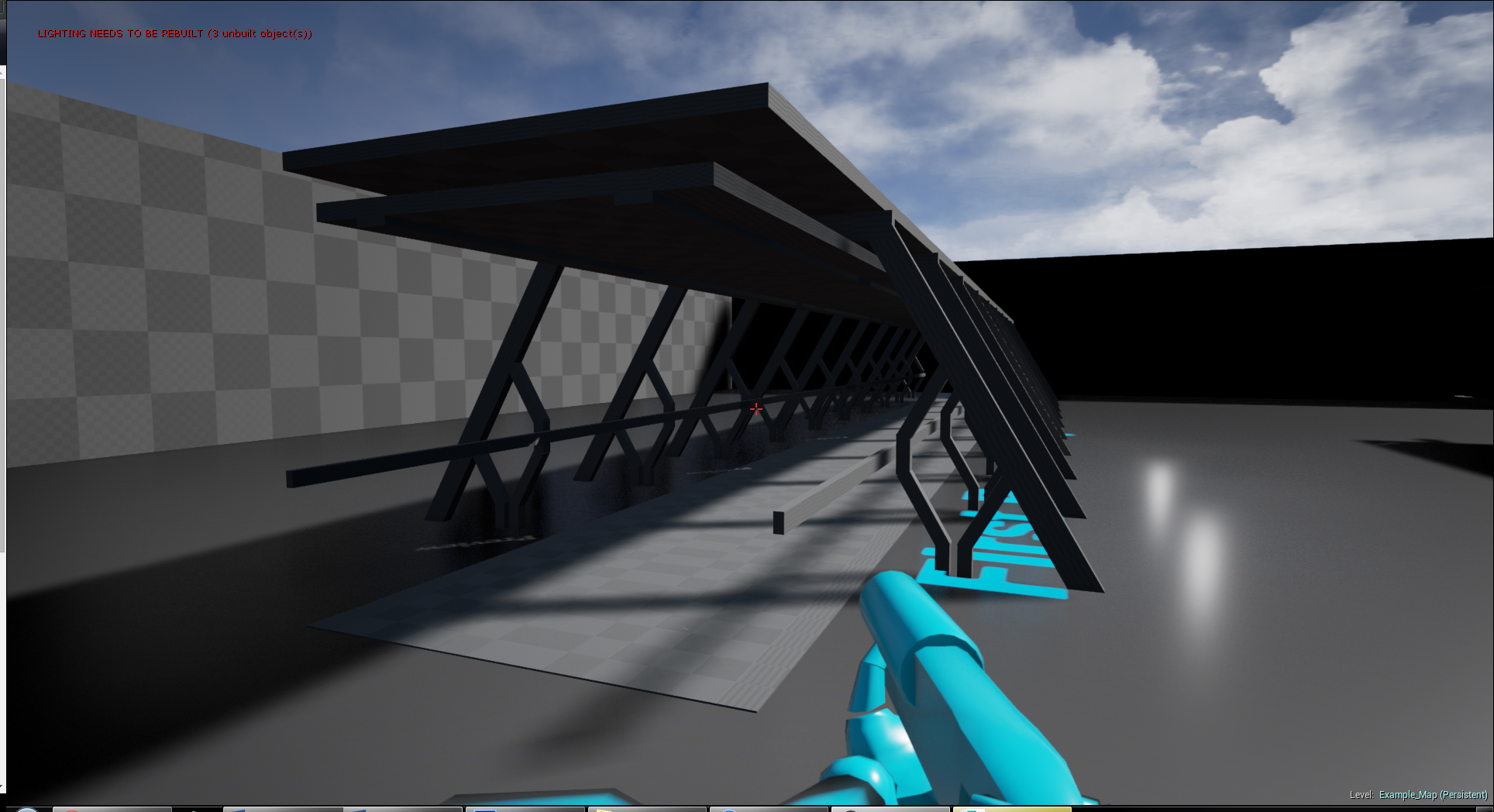 I want to make it exactly to scale. It will be used in the Unreal Engine 4 game engine and I'm currently at the stage of blocking out and getting scale correct. I have posted an image of my progress so far but it has been difficult eye-balling dimensions and scale. So far I have worked from the floor tiles (aka Plastic Cargo Pallets) which I've worked out to be 120cm x 80cm, from here I have eyed the rest of the corridor.