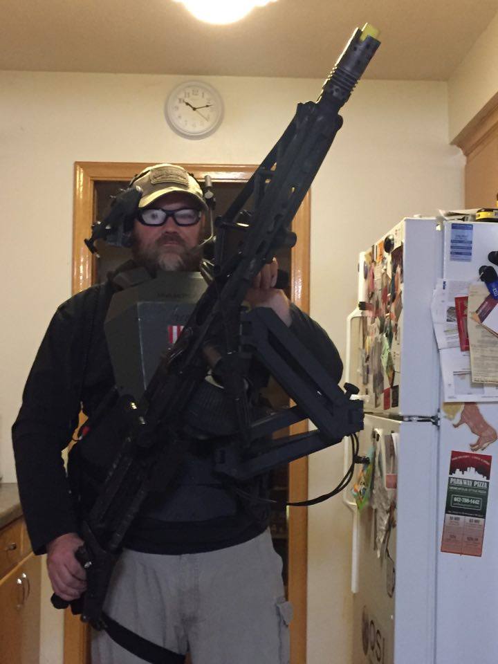 It is really an amazing feeling to put the rig on and see how the steadicam "floats" a meter-long machine gun. Very cool invention!