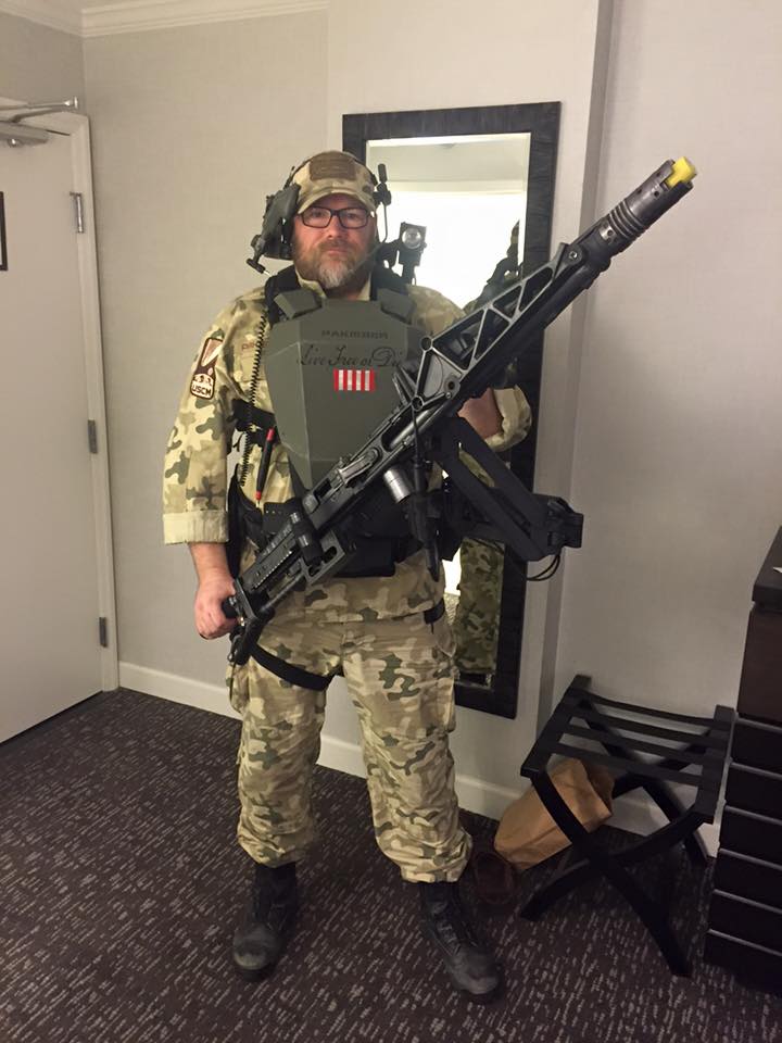 Thanks to Matsuo for the gun, shoulder lamp, and chest plate; Spat for my helmet, armor and battery, and Chef for the M56 headset.