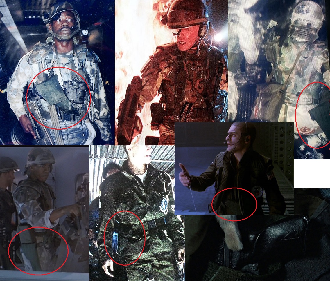 Used by & how worn: They were carried by Hicks (taped to left grenade strap), Drake (tied to left boot, see later pic), Crowe (clipped to belt on left hip, see first pic above), Vasquez (tied to right boot, see Spectre’s pic later in thread), Apone (in continuity pics he had it clipped on his right shoulder bell, but in movie it was on right strap UNDER his VP70 holster! - See later post in this thread)), and Frost (clip around a loop that is attached to belt on left hip so it hangs lower than belt, see later pic)