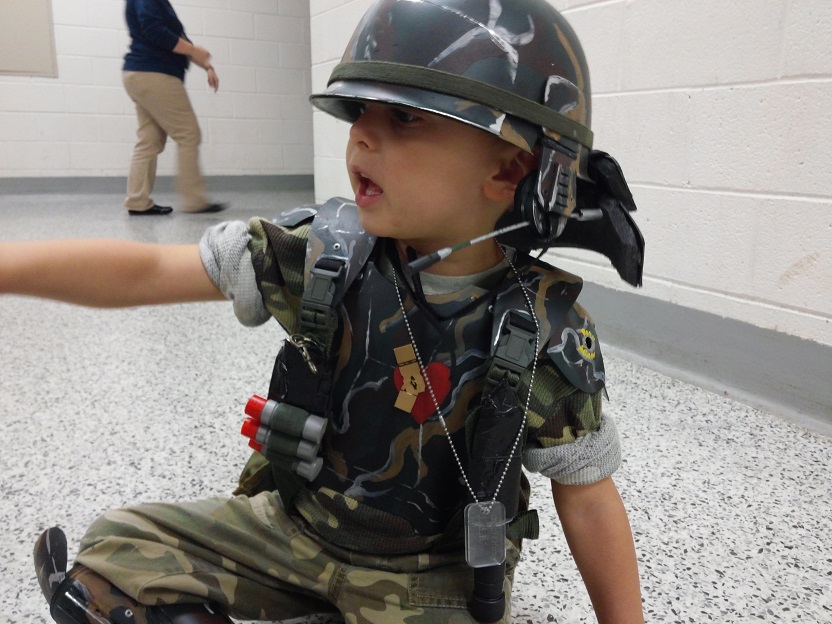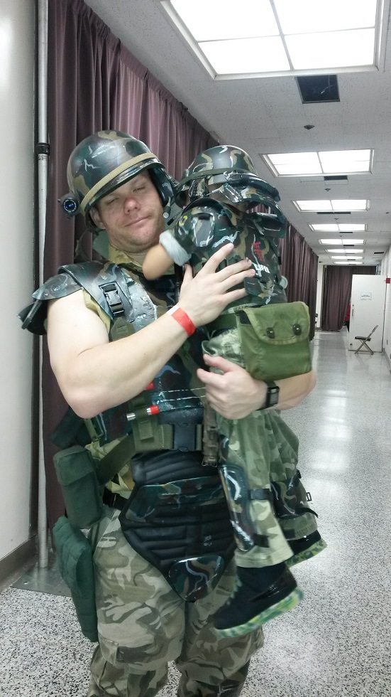 This last one is when he ran out of gas. Its just so surreal that I love it. Armor is not really meant for hugging, so had to hand him off to momma.