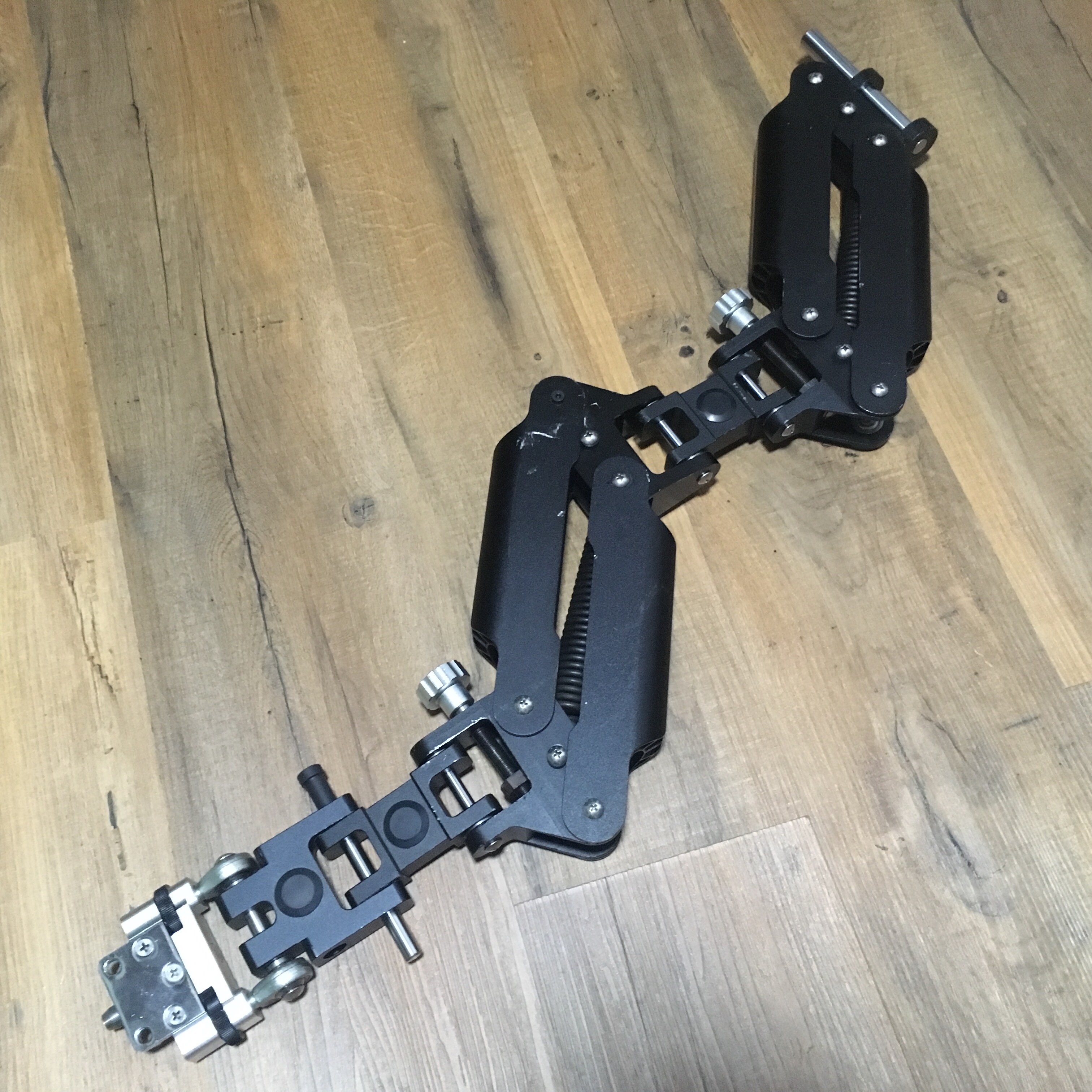 Thanks for the tip, I've been experimenting with the vest and arm combo and with the springs dialled all the way down, I still need about 3,5-4 kg of load in order to achieve equilibrium, so the printed gun will need to have some weight to it and not just for the "feel" of a weapon instead of a toy gun. Taking my 3D printed Moritas as a reference, I expect the printed parts to weigh around 3-4 kilos on their own, so the final weight should exceed that bare minimum of my steadicam arm. I can always use the counterweight under the pivot point as a real counterweight in case the gun ends up being lighter than expected.