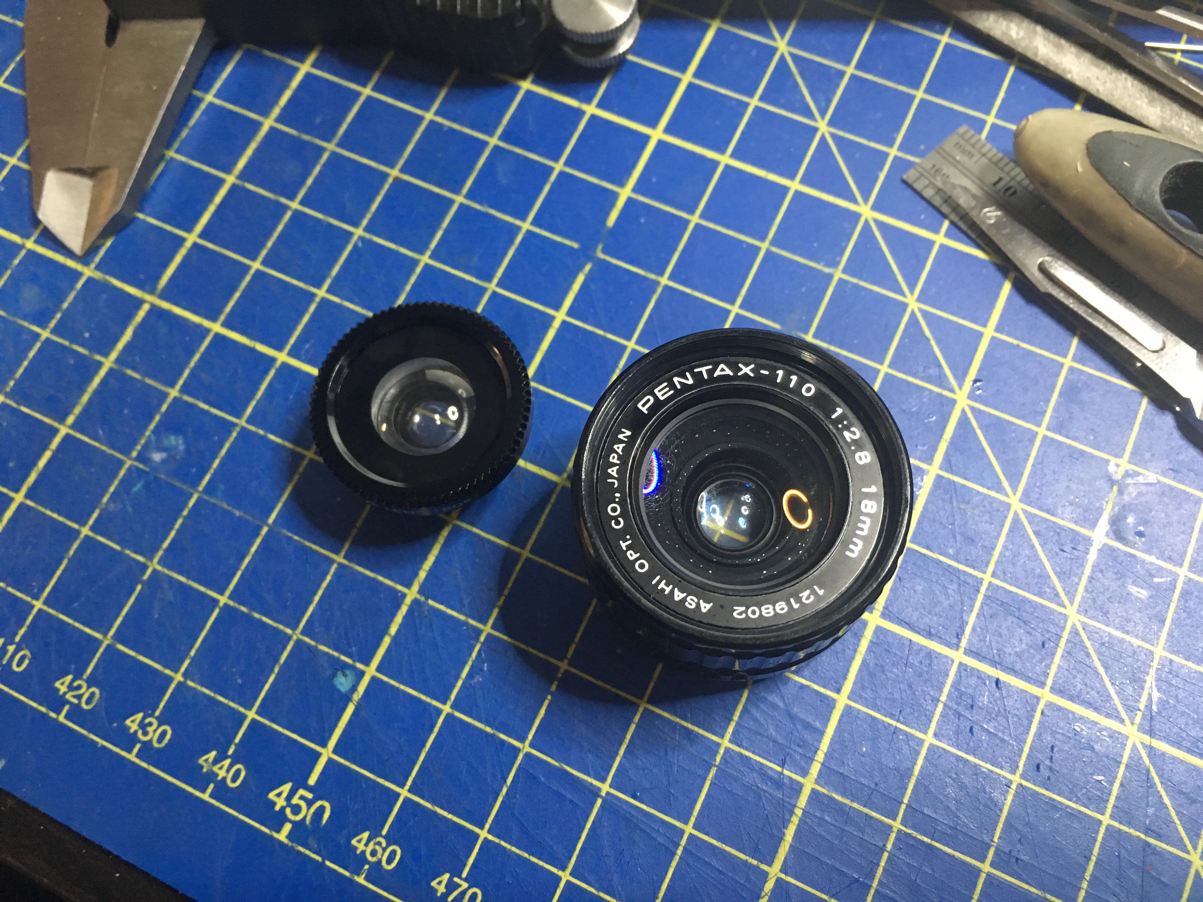 The last bit might help those of you who want to upgrade those helmet cameras and smartgun headsets with resin cast Pentax lens to an optic that looks pretty close to the real deal. I ordered some cheap 3 in 1 phone camera lens kits off of ebay and the biggest lens in the set fits right in the empty case of a Pentax 110 lens.
