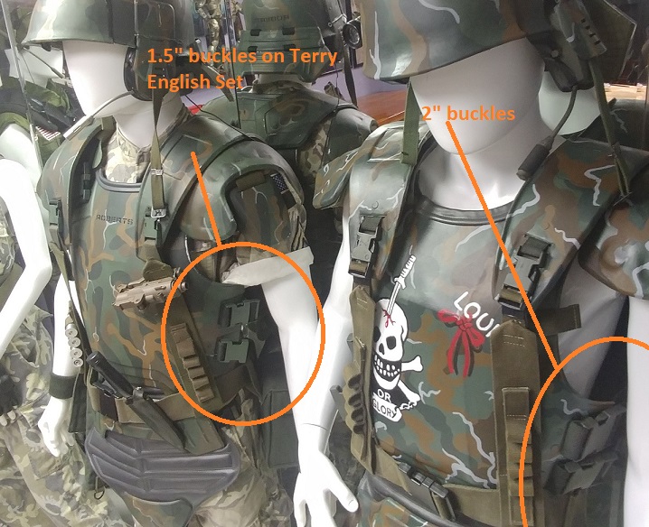 Regarding the rib buckles, here is a pick of my first metal set next to a Terry English set. As you can see, the 2" buckles are fine, but look a tad large. On my 2nd metal set I would use 1.5" buckles like Terry Does.