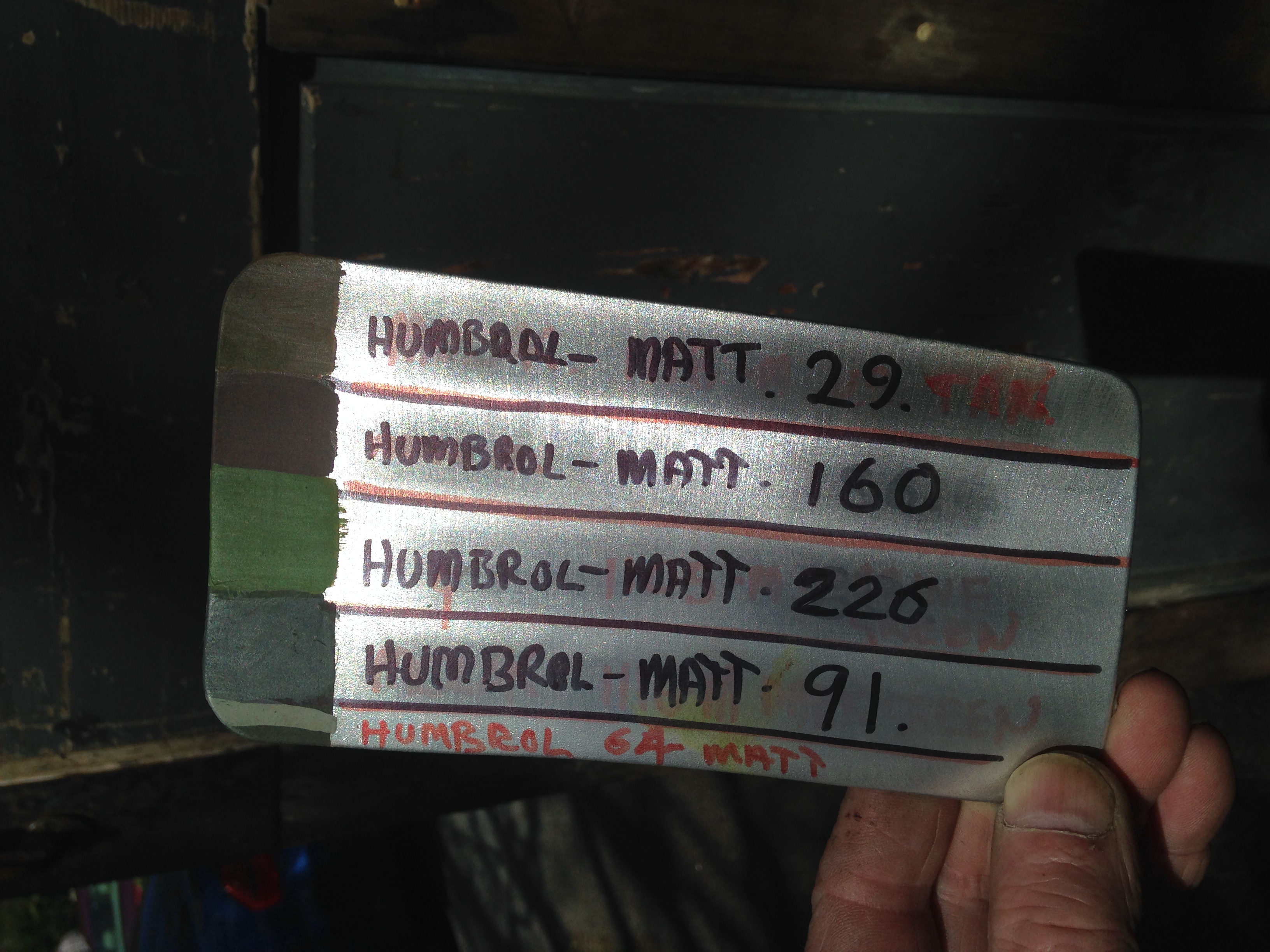 It was a piece of metal with all the colours painted on and a Humbrol Colour and code written next to it. He said it was what he originally used as a record of what paints he used.
