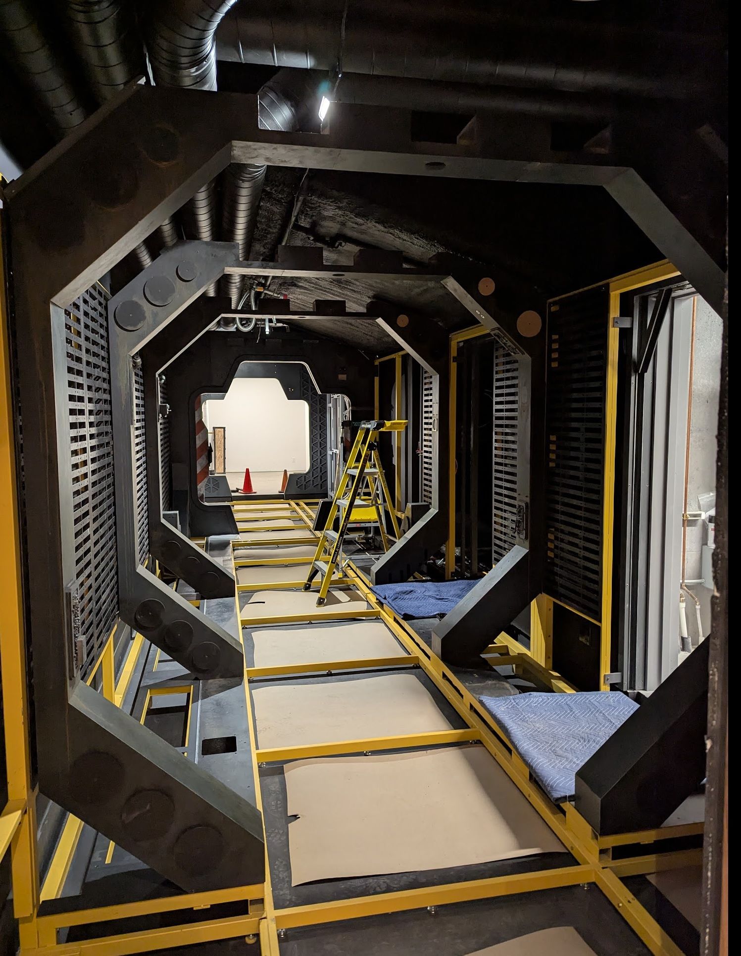 Progress wise, we're still wiring everything up, and mucking about with lighting. Now that the corridor is fully enclosed, we can finally evaluate the lighting properly. We've already added some extra lights in some places, so that things aren't so dark that you can't make out details. As an alternative to that extra light, I do want to try placing some in-fiction flashlights outside the entrance so people can enter it with one in their hand - exploring the corridor with a cellphone camera is already a pretty awesome feeling, and really helps you appreciate all the weathering detail.