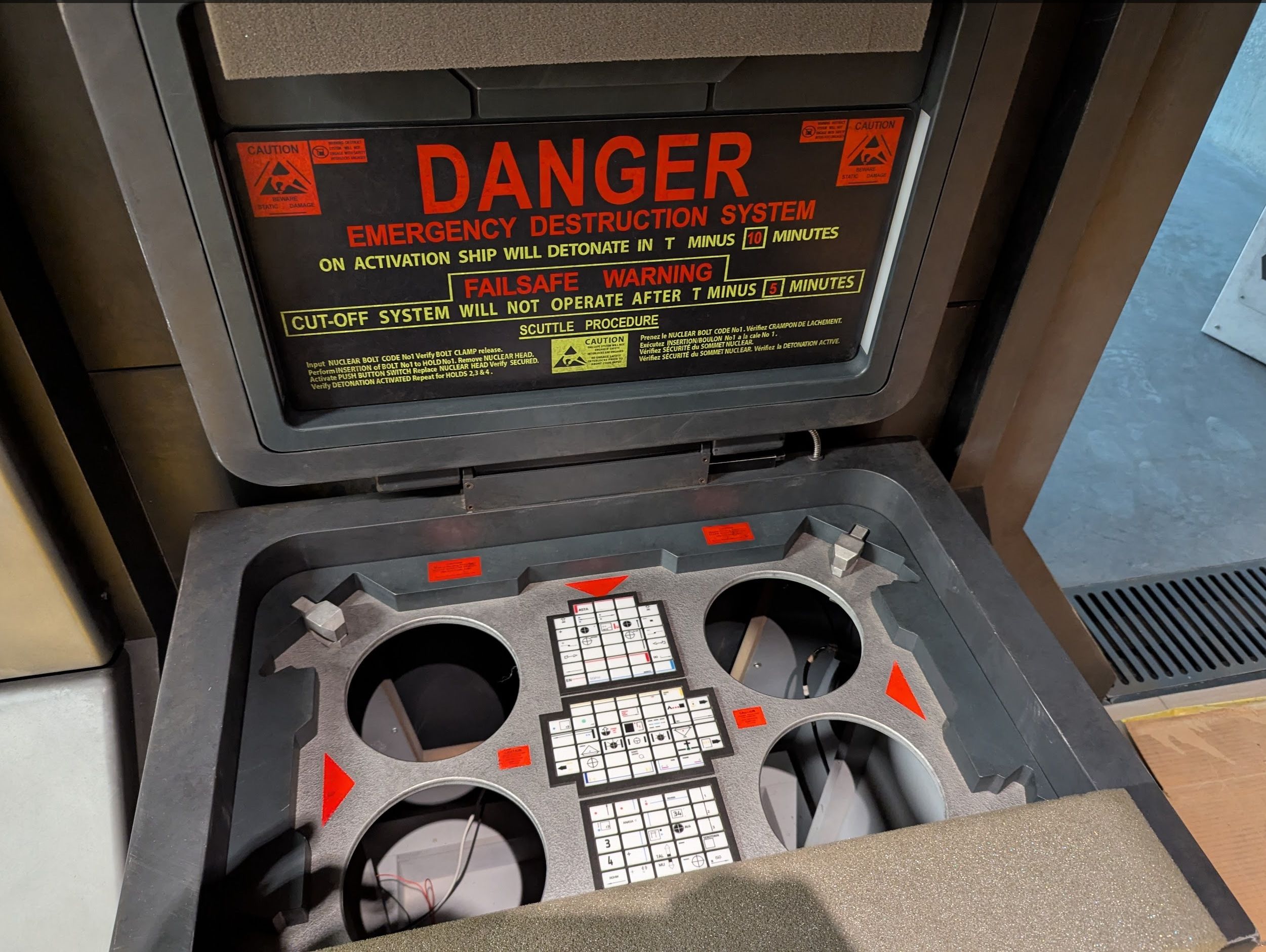 To answer your questions, it's a permanent fixture inside a building, with no plans to relocate it elsewhere. It was specifically designed to fit into a somewhat weirdly shaped volume inside the building, underneath a sloped staircase that's above it. To be honest, during development I didn't really think about anyone wanting to visit it. In retrospect, that was probably a mistake, especially now that it has a couple of props from the movie in it. I hate the idea of people not being able to see those. So I'm going to think a bit about ways to solve that.
