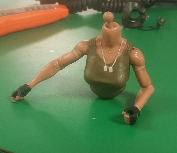 Just a side note, Vaz's tank top is sculpted into the body. It isn't fully painted, so if you want the 'briefing' look, some mild painting and scrape work will be all that is necessary for the body. A ton of work needs to be done to her head though. LOTS of filling and maybe light sculpting. The BDU shirt portion is borderline unusable. Making an 'ops battle' vaz will be difficult...but not impossible!
