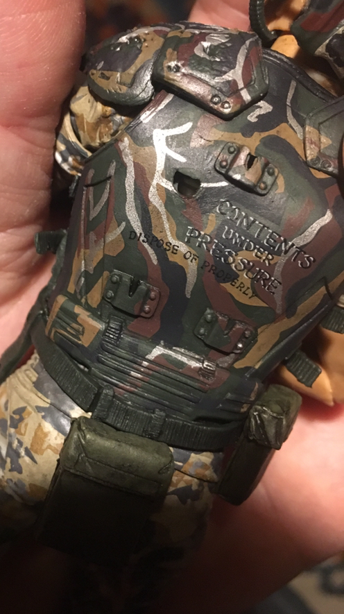 I played around with spare NECA bodies and armor parts to make a Drake in movie camo. Not screen accurate, but the guy blends into my movie style marines way better now.