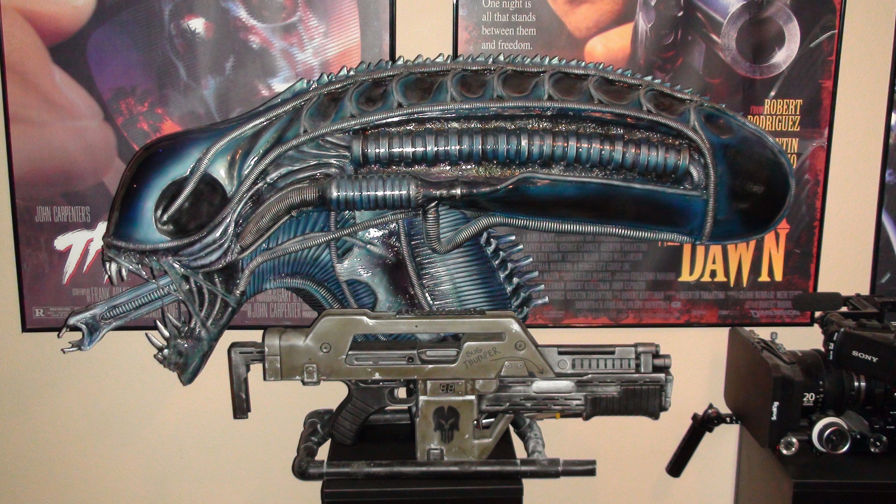 The discussion of the Alien series of films and the props used in them is the aim, but if it's got Big Bugs and Big Guns, then they are welcome too!