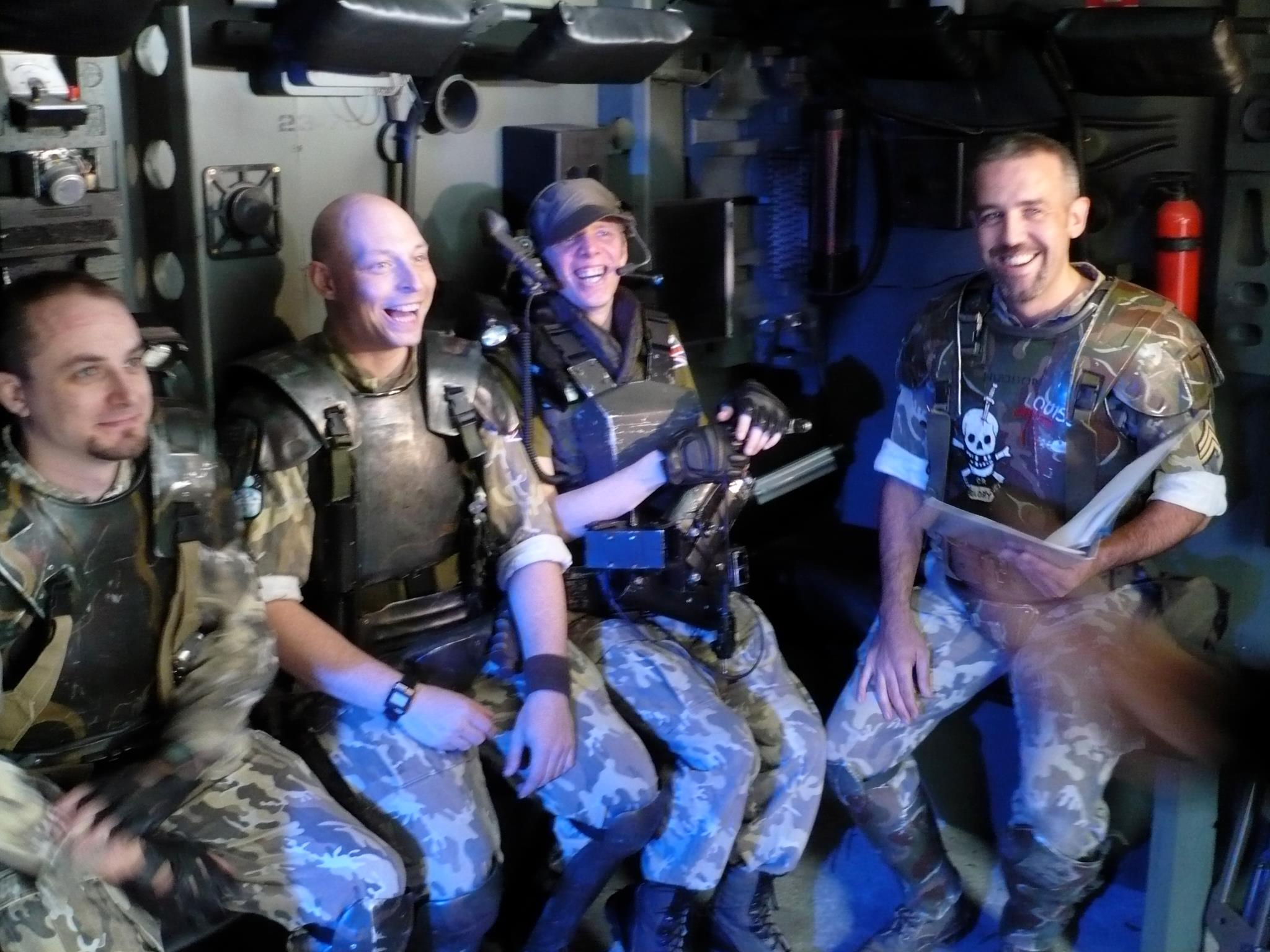 The dropship cargo bay interior was built by us. All the other stuff is locations with set dressing.