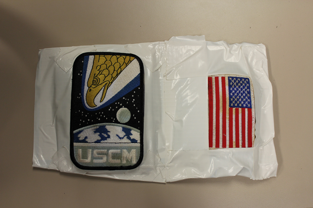 My weathered patches. I used Lipton tea and a pinch of dirt. I frayed a few threads on the flag, but I don't actually want the thing to unravel.