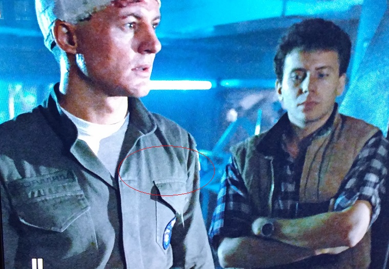 Last is a boring costuming note. This is not to say Gorman had no "USCM" nametape strip on all the screen used uniforms, but in this scene he had no "USCM" on his shirt. His jacket def had both his name and the USCM strips, but this 'shirt' is missing the "USCM".