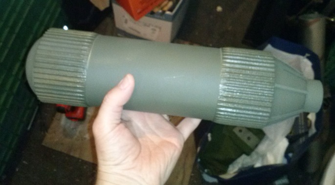 I finished off the top of the tank with putty and a length of plastic pipe. It still needs a little cleanup before I paint it, but this end is effectively done. Now on to the bottom!