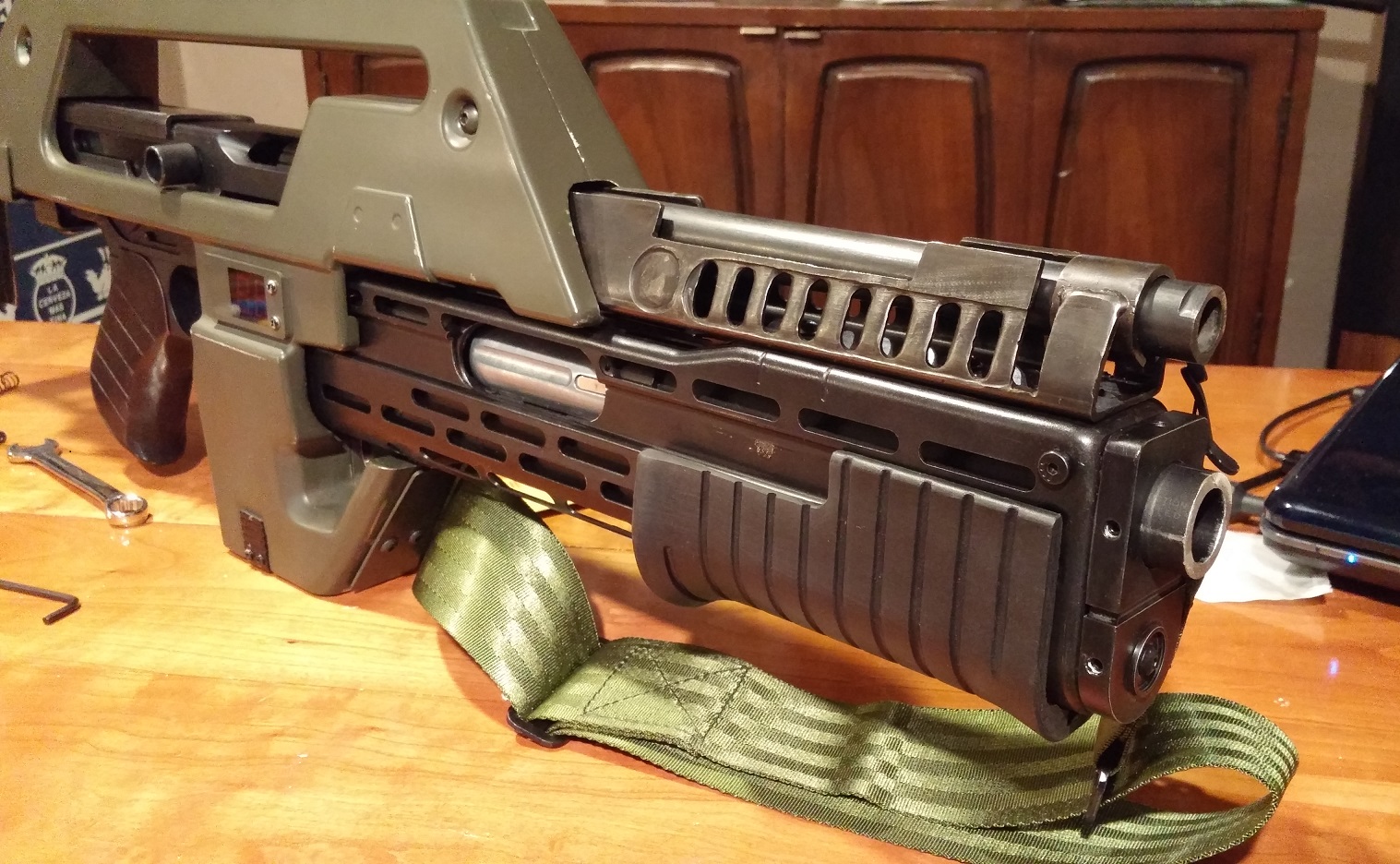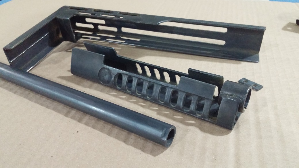 So if you measured everything correctly, you now have a "Grenade Launcher" grip that bolts directly too the slide arm of the 870. If you welded it in place correctly, it slides freely back and forth in the extra long slit that was cut into your SPAS cage.