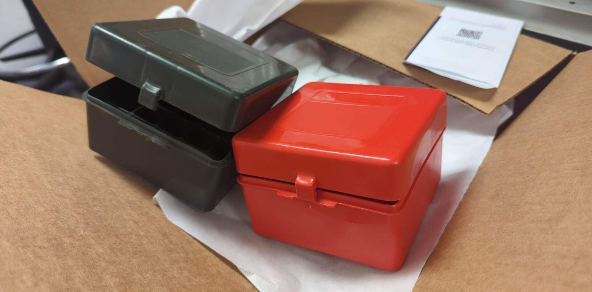 They look identical to the modern 20g boxes, but are of course slightly larger. They came in green and red. As you can see the brand and markings are all identical. Just need to find the 'old style' to get the screen accurate box.