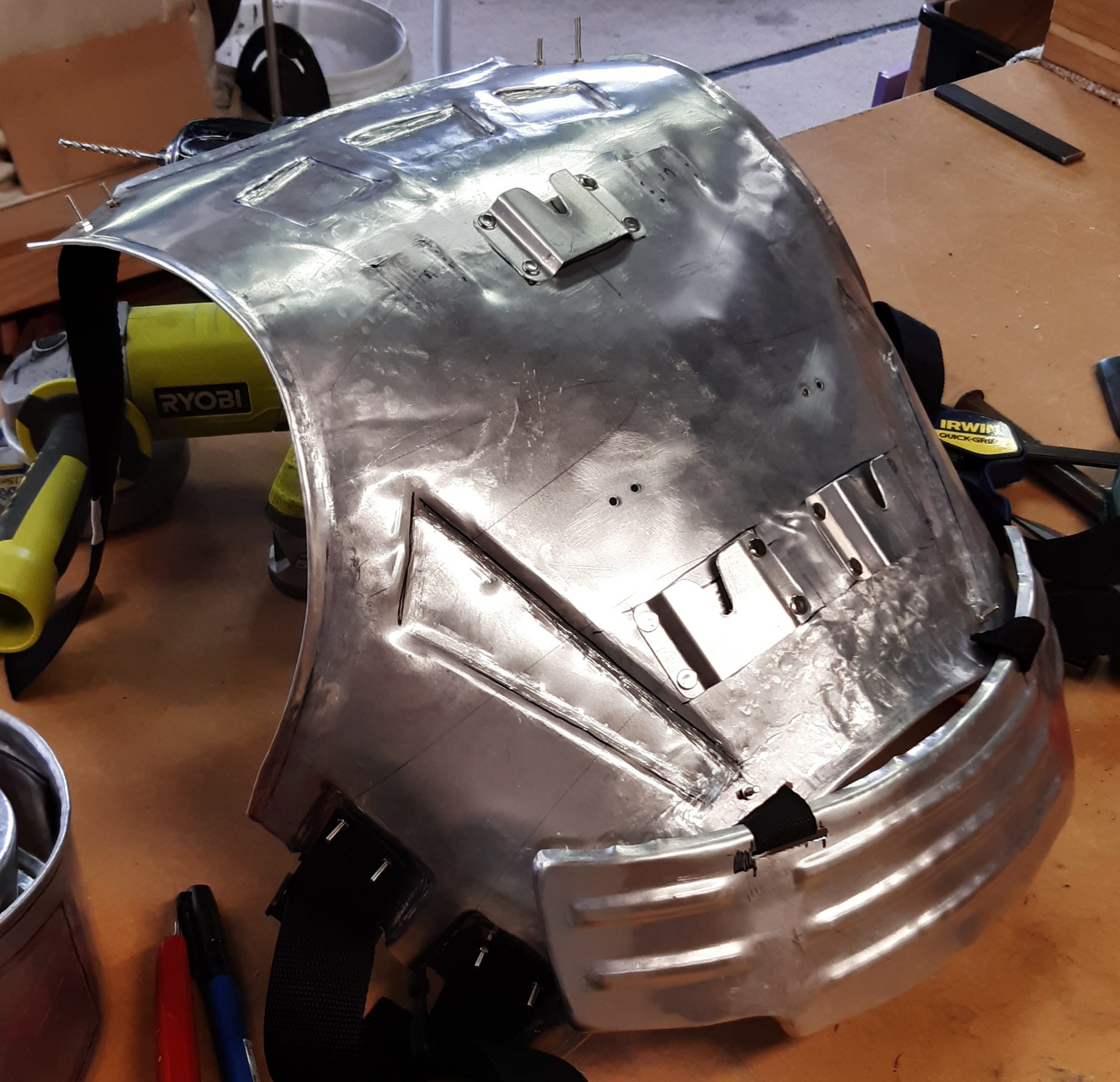 Tried annealing the aluminium with a small gas torch, wow what a difference! Would have been nice to do that from the start. Might have to redo some parts (again) to get a better shape to them, picking up some more aluminium soon to do the chest and back plate, been a bit of a wait to get to them.