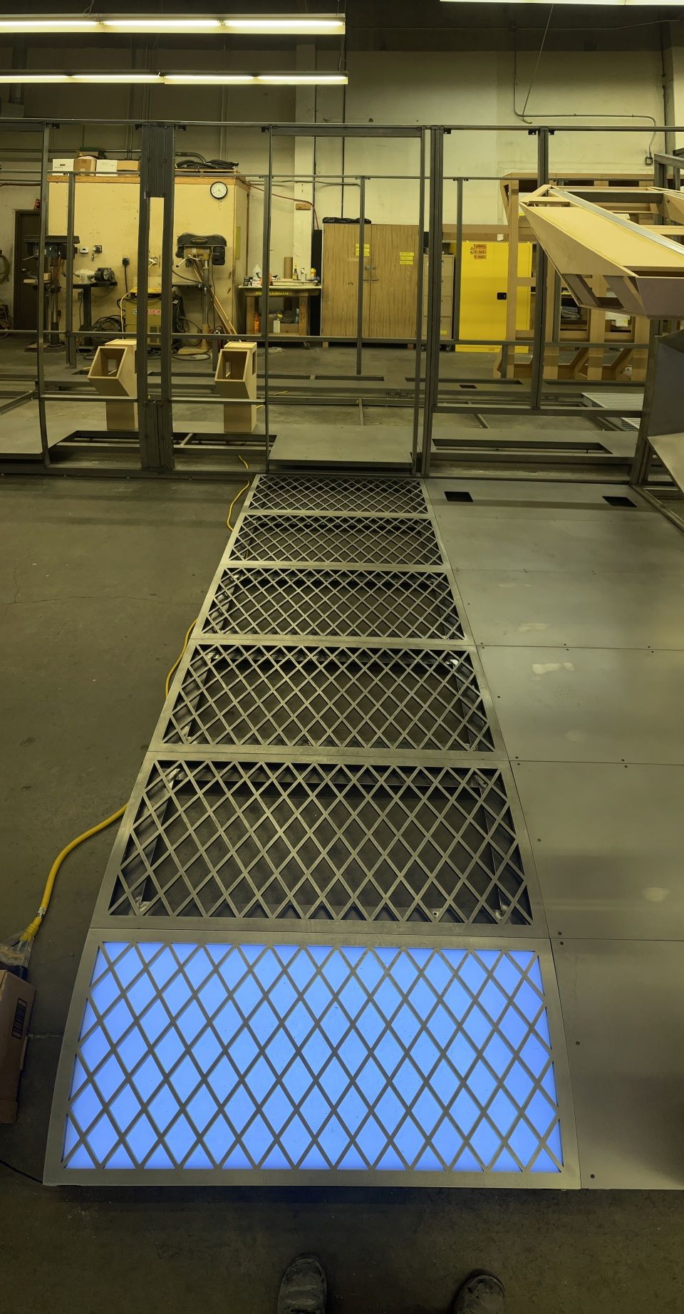 We couldn't resist seeing what the corridor looked like if we waited until it got dark. Even with just some primed pallets and raw MDF, it was getting exciting.