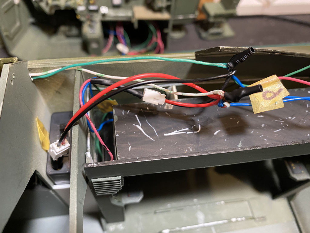 Had a couple of hours today to start wiring this thing properly. There's heat-shrink on exposed joins and Gorman's console is unpluggable if I want to work on it separately.