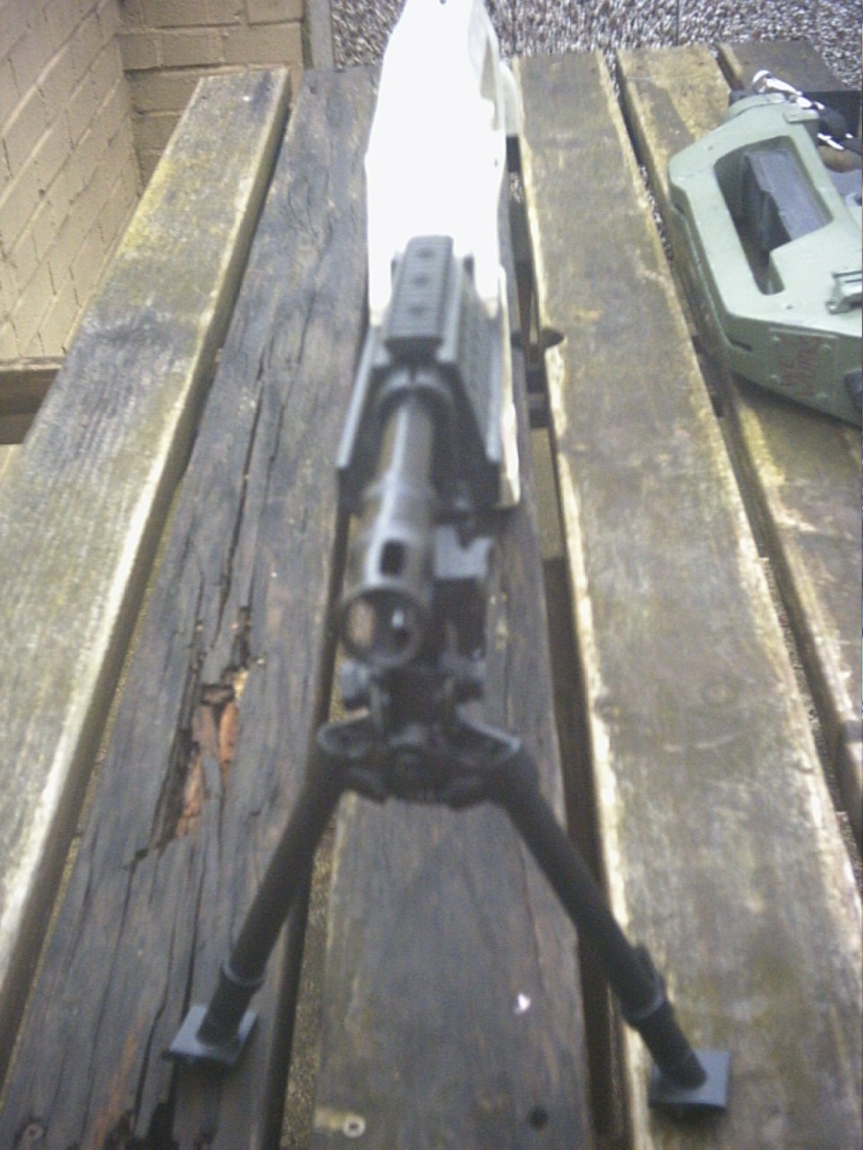 Demonstrating the movement of the weapon whilst bi pod deployed.