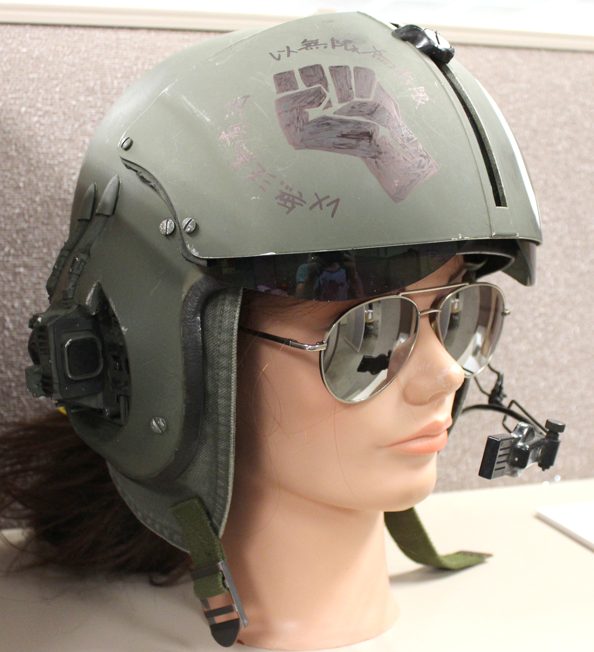 The graffiti on the right front lobe is courtesy of my friend Frank Wong from Hong Kong. I was having a heck of a time coming up with something as I've really been focused on my Rifleman build and didn't have a handle on who this Pilot even is. He suggested the motto from Bruce Lee's Jeet Koon Do (translating roughly as "using no way as way" and "having no limitation as limitation"). I then added the fist given that Jeet Koon Do means "way of the intercepting fist". Doing it entirely in sharpie gives it a nice Vietnam era feel.