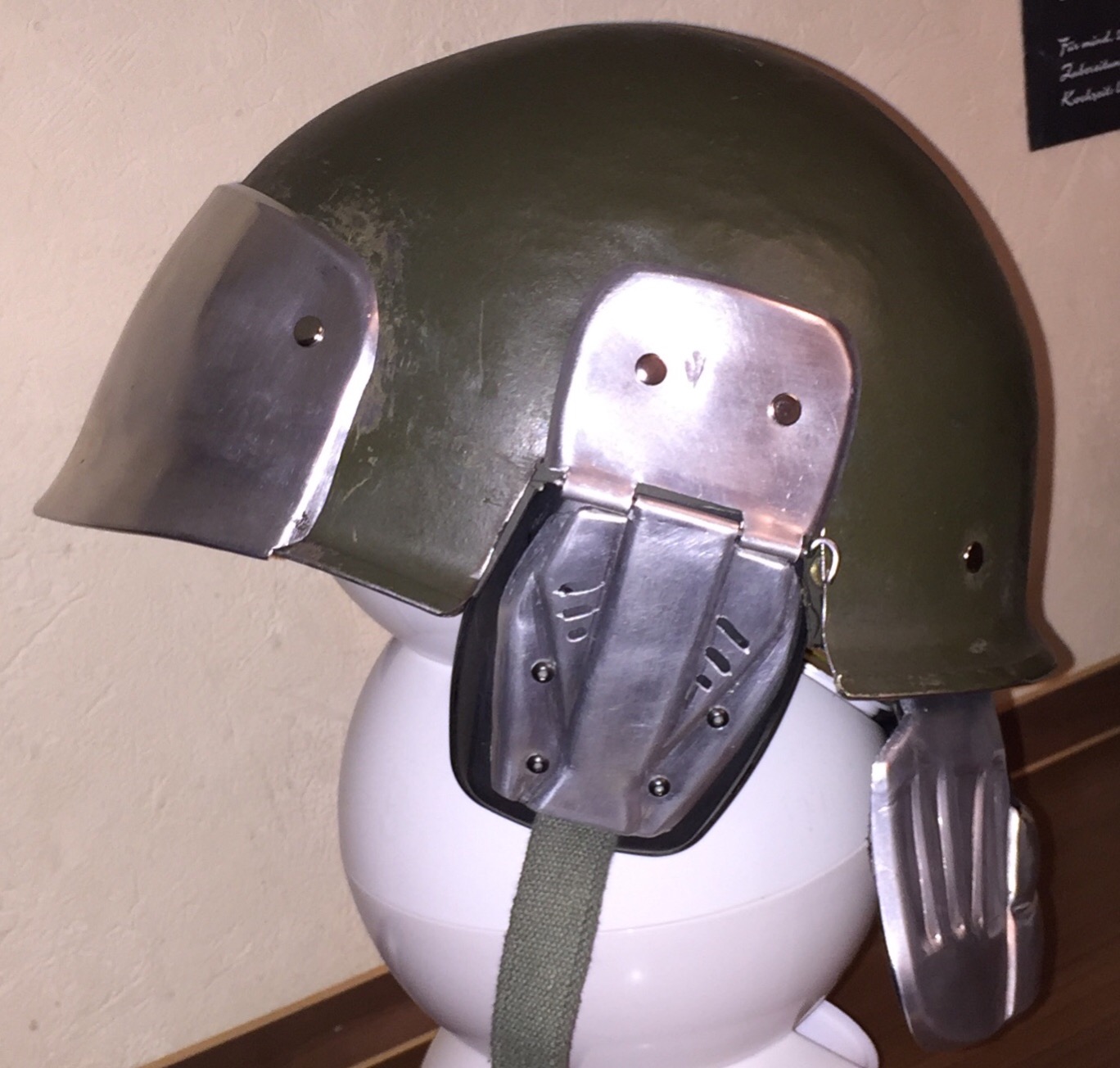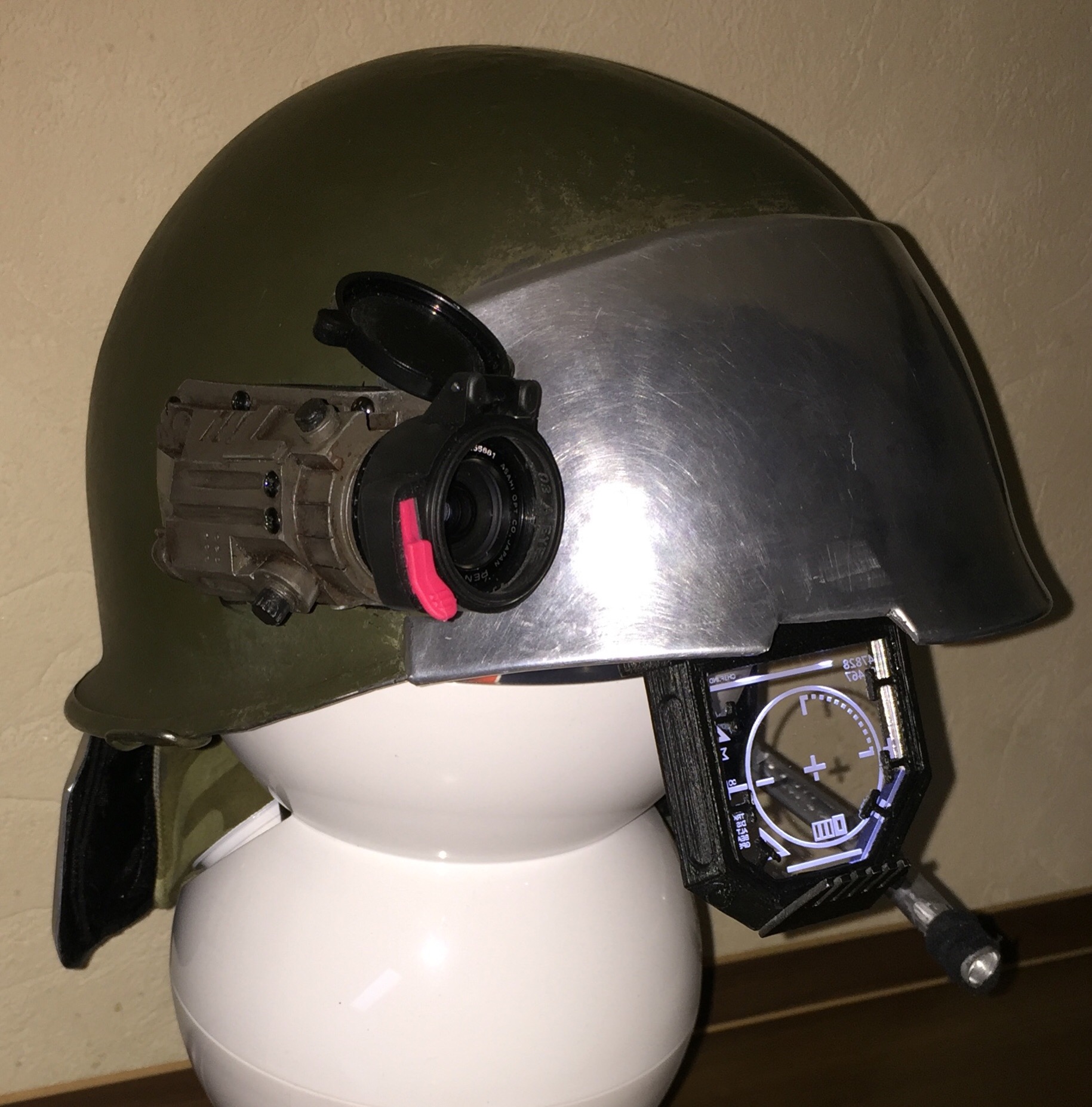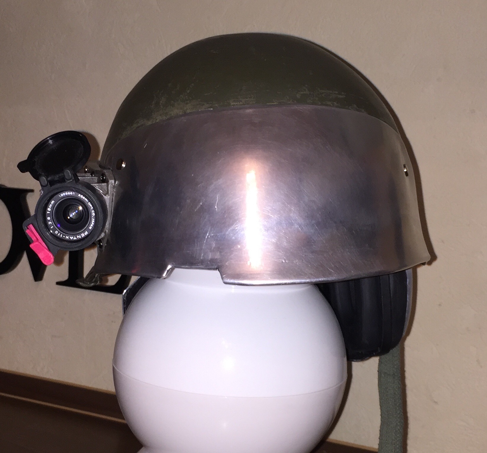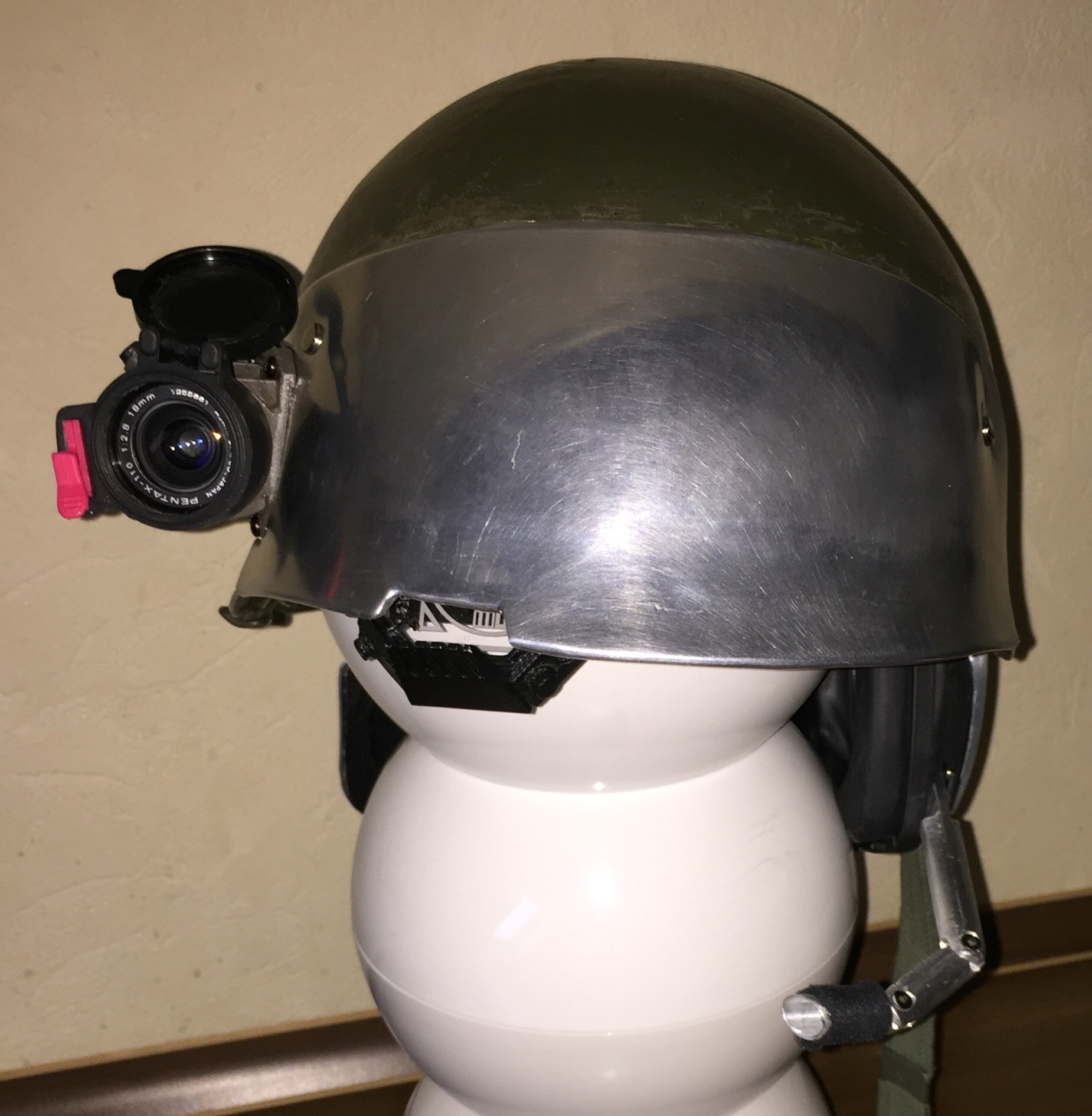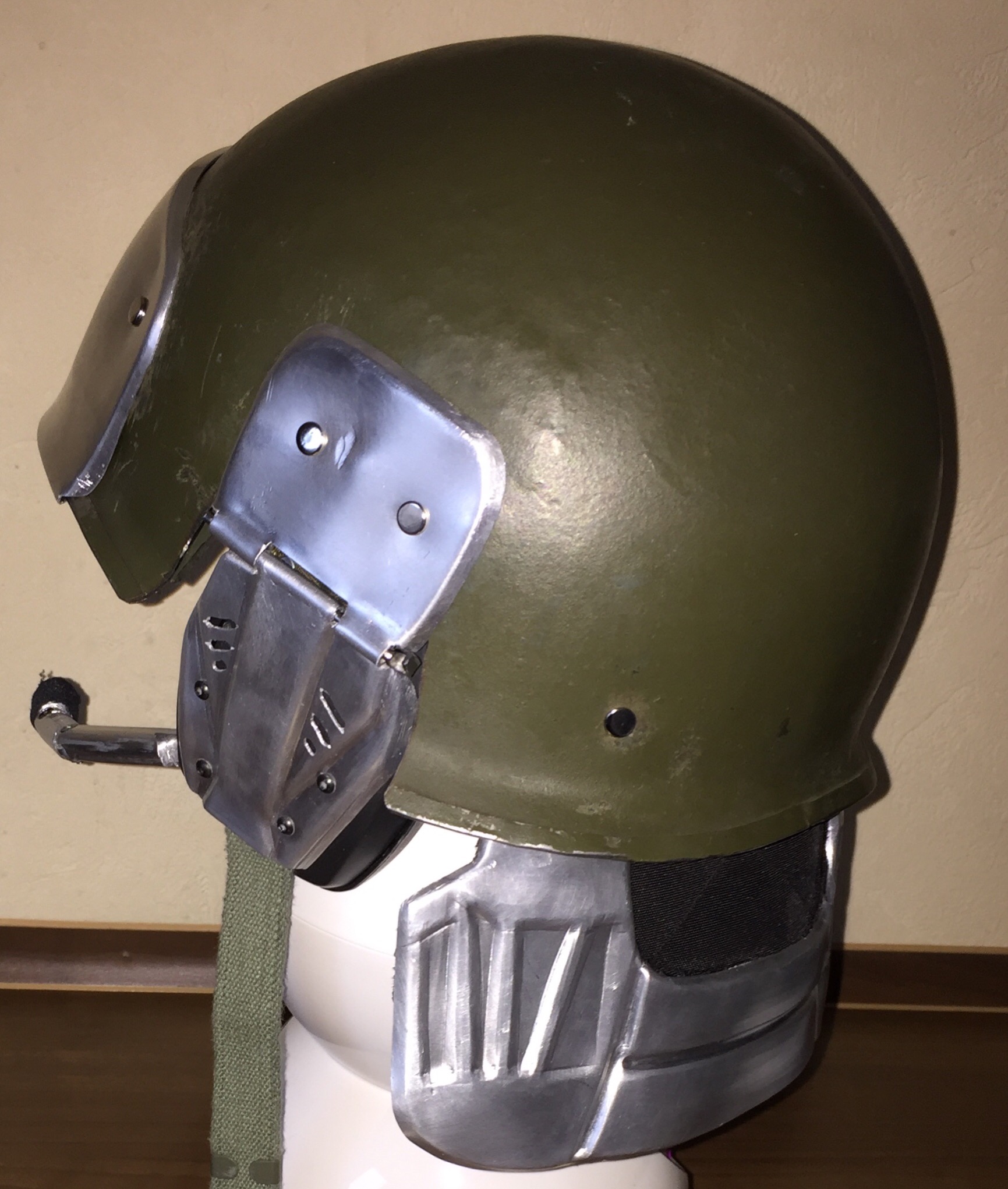 Got all the plates fixed onto the helmet,but still a bit to be done like getting the IR sight fixed in,and then I Will have to scratch build a microphone.