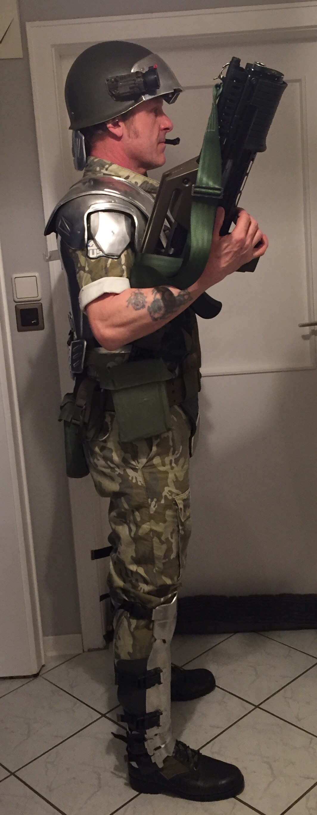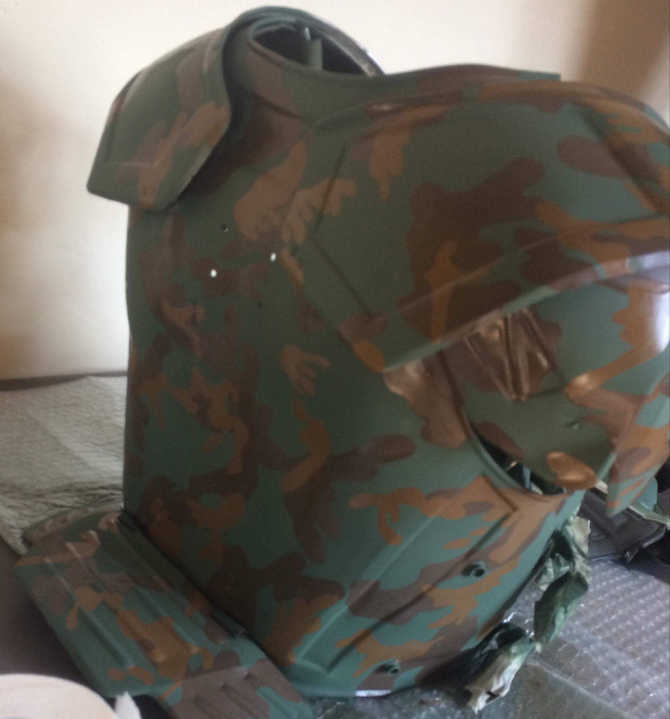 The final test fitting before I send it of to be all painted up but it still fits and it’s quit komfortabel to wear,a phew small adjustments to be maid but nothing major,all I need to do now is get the shoulder lamp finished but I’ll be getting on with that whilst the armour is being painted.