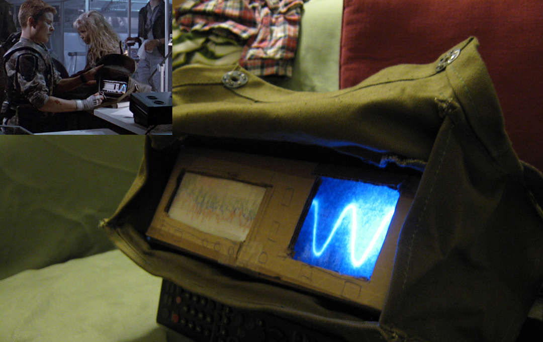 Well that's what I'm planning to do. We'll start with the really ugly basics. The med kit shows up at about the 100 minute mark in the director's cut, and has only a few seconds of screen time. Nevertheless we know it beeps, has lights, and is giving Cpl. Dietrich information about her patient. So after watching it about a dozen times and checking out screen grabs I've started making my version.