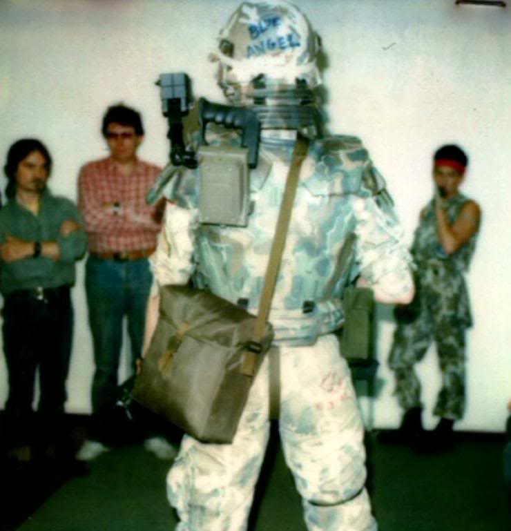 So here we have the paper readout on the left and the "oscilloscope" (i.e. backlit laminated printout) on the right. This was mostly to test the fit in the Finnish gasmask bag I'm using. I am of the belief that the original prop bag was fabricated along with the pouches the Marines wear, but not out of the same material. In any case, this bag is a close enough match to meet my needs.