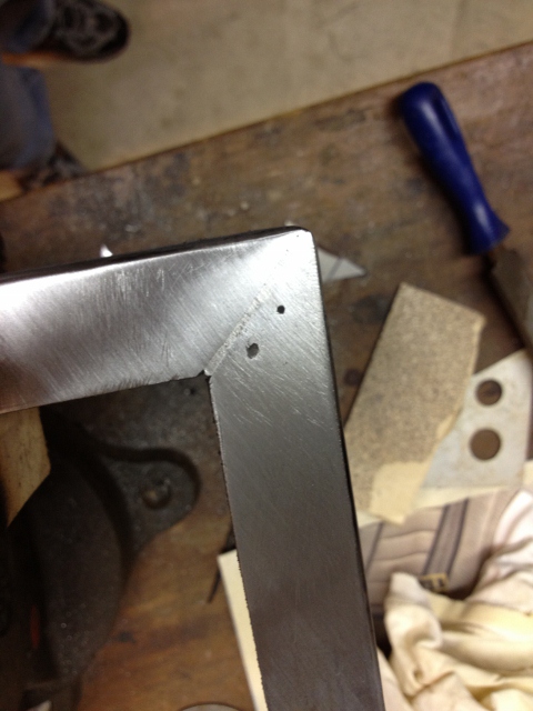 Had a little time today to work on the stock. Storms knocked out power here for a day. Had to run around locating a generator for myself and mu father in law but I got power back so I decided to do some work. I reinforced the corners with metal. I then used solder and filled the gap on both sides. I filed the solder down and I will fill any remaning imperfections with a thin coat of automotive body filler. Here are more progress pics!