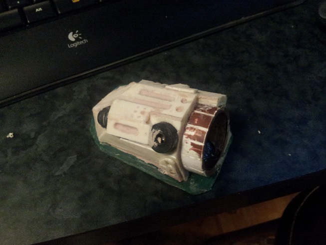 It didn’t take long for the weight of the ‘wet’ paper to cause the supports to bend, collapse, and even rip clear off. If anyone does this, be sure to reinforce the supports with either metal or plastic posts on top of the paper ones, or if you have the material, replace the supports completely. My first cup of mixed resin was wasted because it all dried while I attempted to re-establish the posts after they collapsed. Trying to tape posts back in place with hardening-by-the-second resin coated gloves on was comical. I eventually had to accept the lost session and re-group.