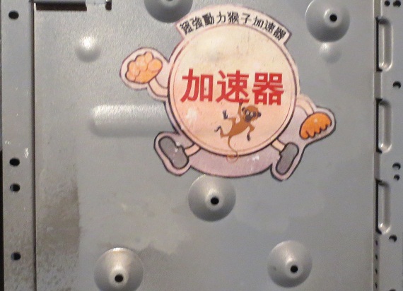 In fact, to reinforce the idea of the back being a cargo container I've put a company logo on it (sorry this picture is blurry). You can see it in the photo of me working on the model just above my right eye. The logo is for "Awesome Power Monkey Accelerator", an odd in-joke from my work that I had translated into Chinese. This will get very little screen time, but I think it adds to the sense of realism in a way. Considering the ship's cargo is polydichloric euthimal I'd say the phrase "power monkey" is pretty apt.