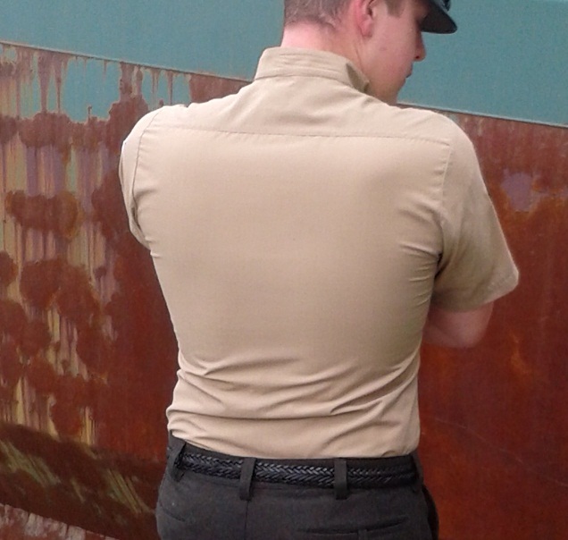 This got me thinking about the Service C shirt. Does anyone wear it untucked? Hell no! Does that mean there's a rather significant piece of material tucked into the back of your trousers? Hell yes!
