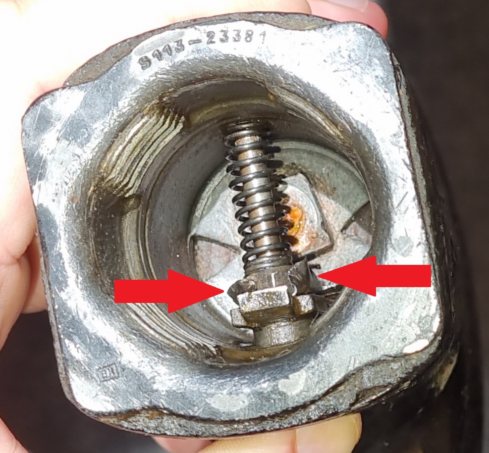Guessing, but I think you'd need find a way to loosen that nut at the back (you can just see mine, looks a little rusty), with a pair of needle-nose pliers, working around the sprung bolt ... ?