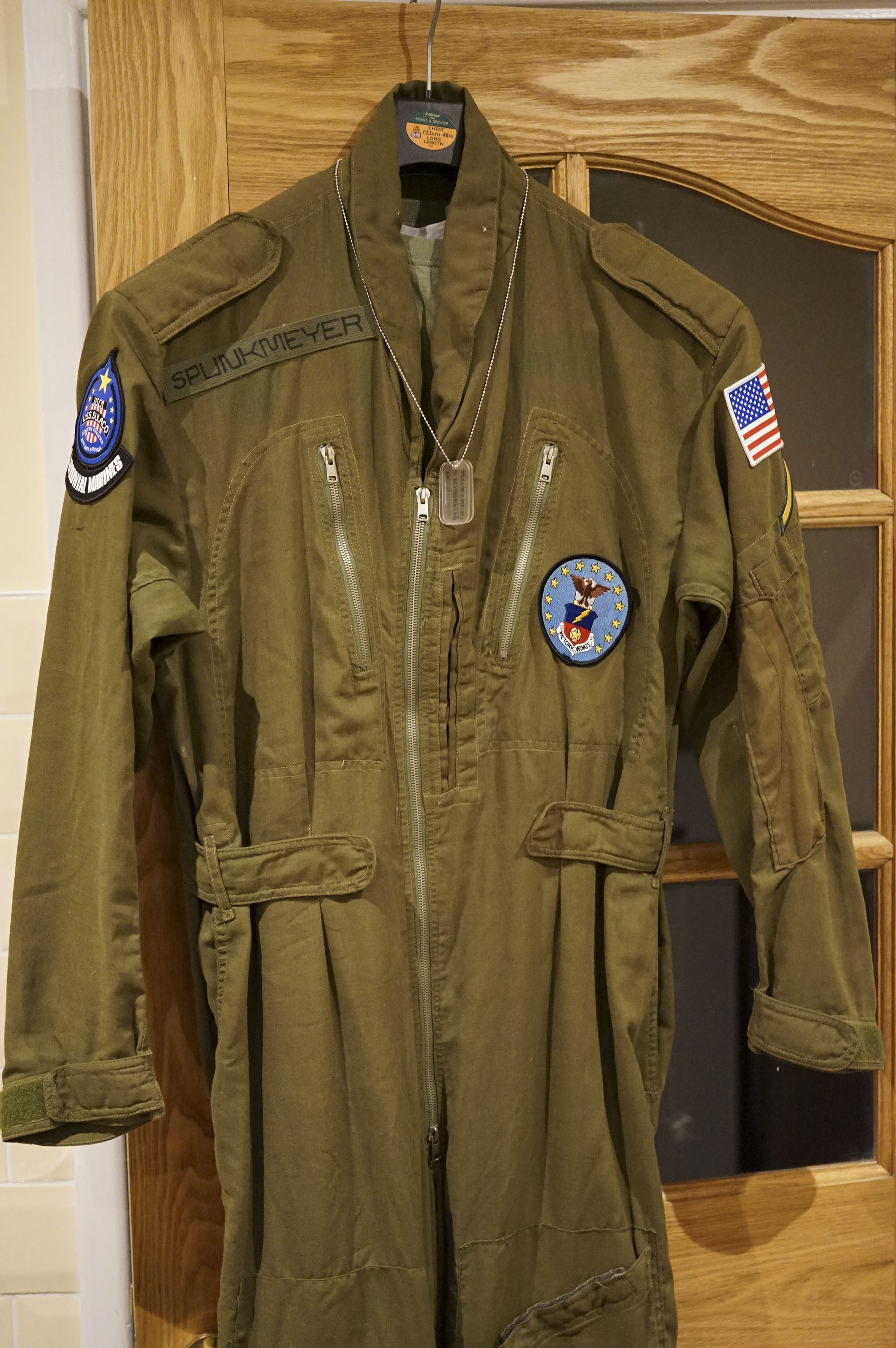 US Army M1969 flak jacket - from Germany, with 2 x layers of yoga mat for the armour, I left Ferros plain, but on this M1969 someone had written some numbers in Sharpie on the back, as it's nylon I didn't want to try the usual ink removers so decided to cover it up (mostly) with a huge Bugstomper patch. I know he would fly Smart Ass as well and I have some smaller Smart Ass patches, but I just guess Bugstomper was his favourite!