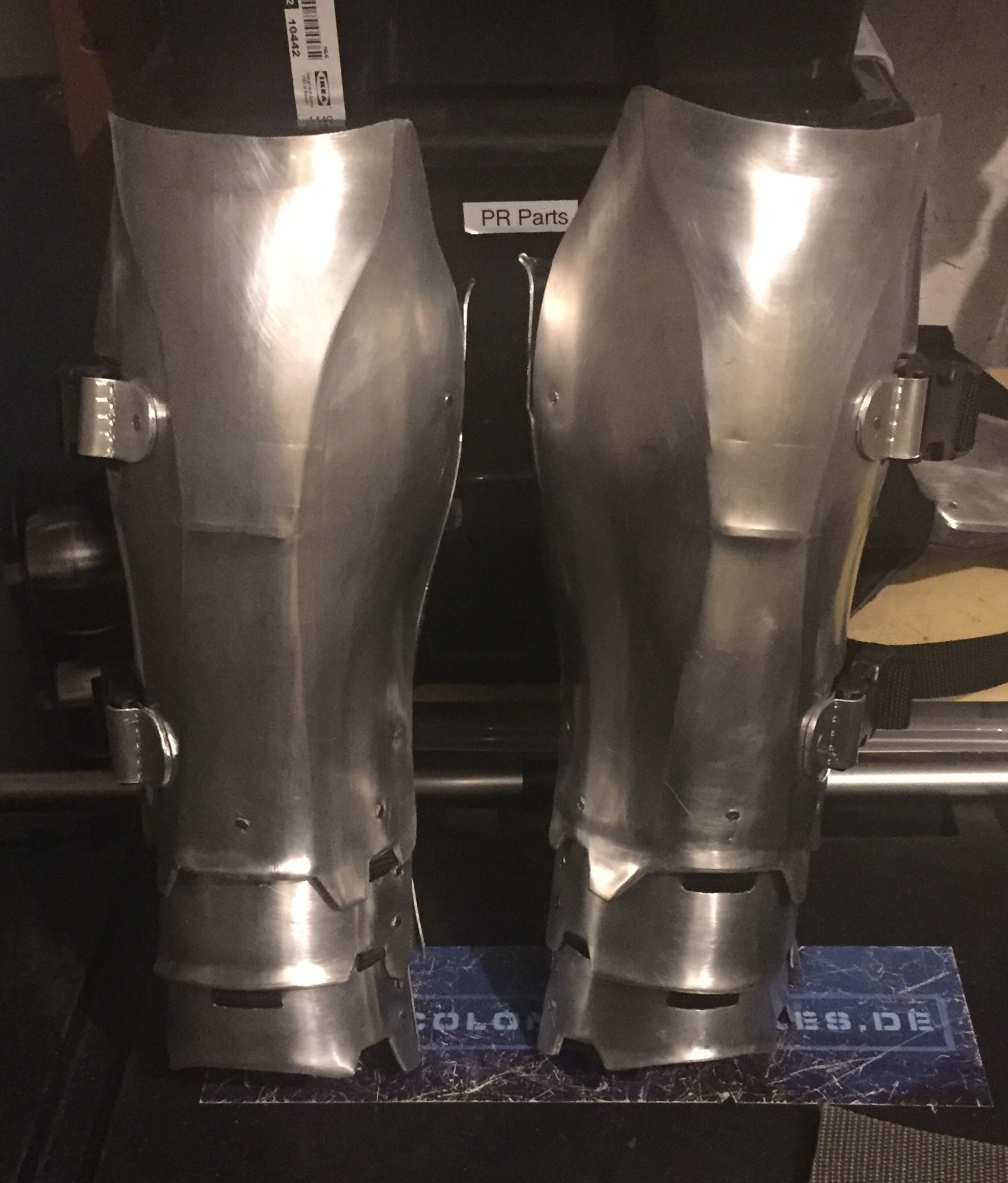 Got a little more work done on the greaves tonight and I will be putting them together tomorrow,and then I’ll be getting started on the knee parts.