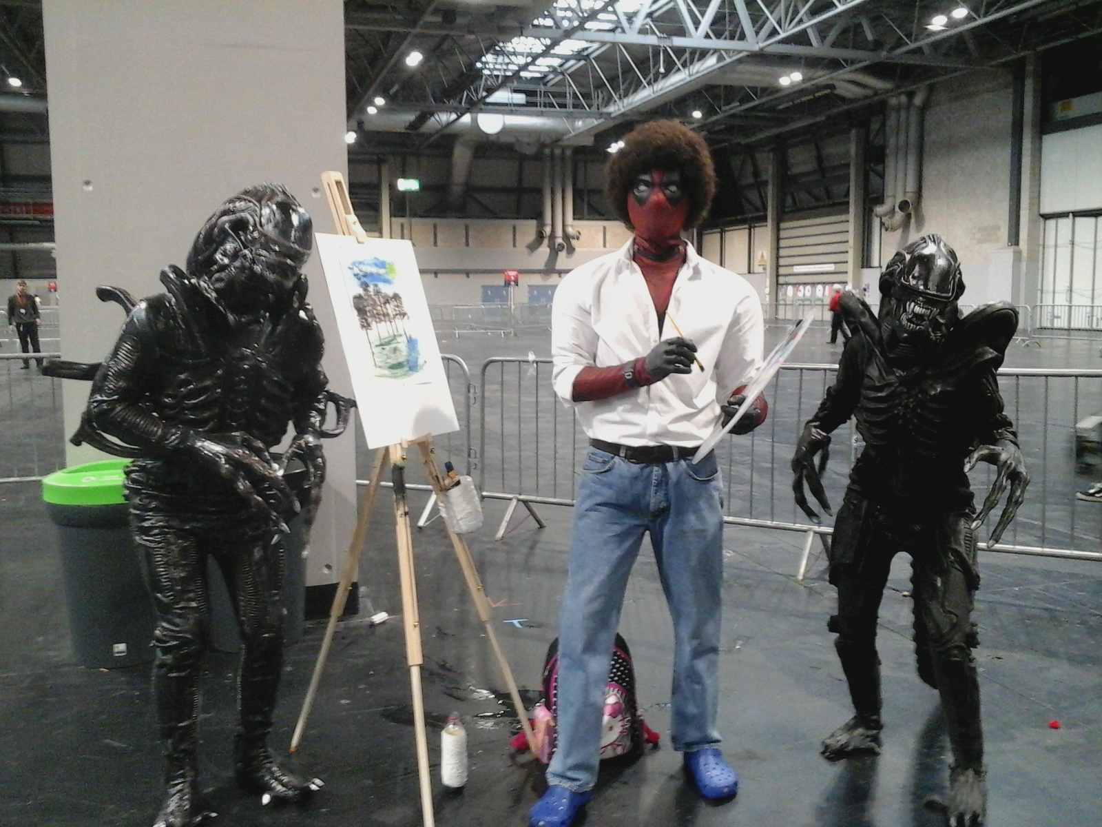 Deadpool Bob Ross (Mark Brooks from Funkstyer Cosplay) painting some Happy Little Xenos...