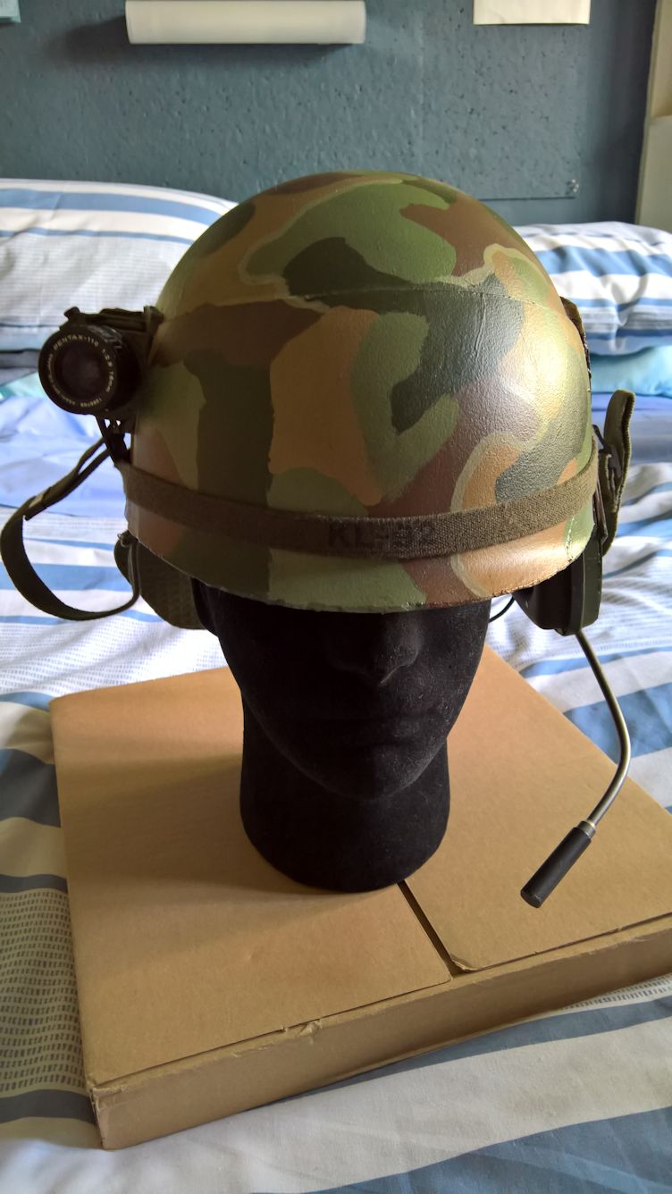 This is the helmet I have. It's just a hobby project I put together a couple of years back and repainted as part of the upgrade. It will need replacing for an accurate earpiece. Note that since these photos were taken I have painted over my name on the back and reapplied it much smaller.