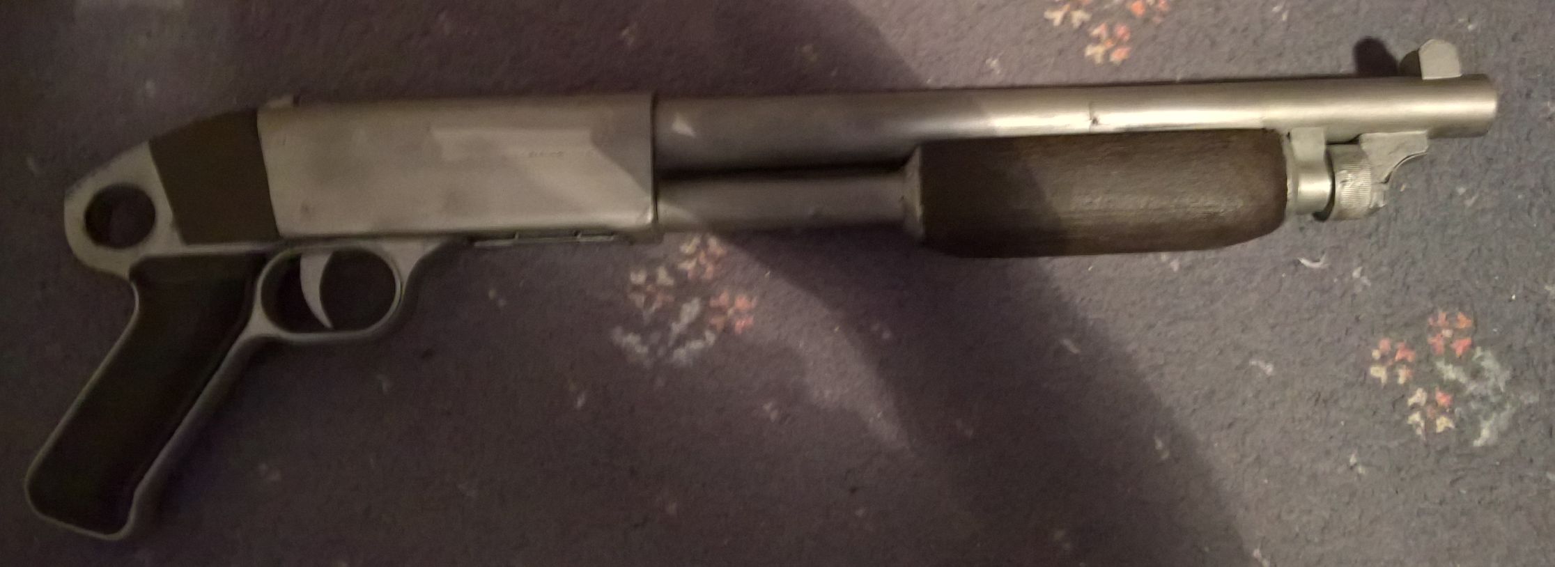 A few years ago I bought a cheap (£20) airsoft MP40 with the intention of converting it into the weapon used in the film Iron Sky but never got around to it. Fast forward to a couple of weeks ago and the surplus store I frequent had a lot of cheap airsoft guns, including a compact Remington 870 that I decided I could convert to the Ithaca carried by Hicks.