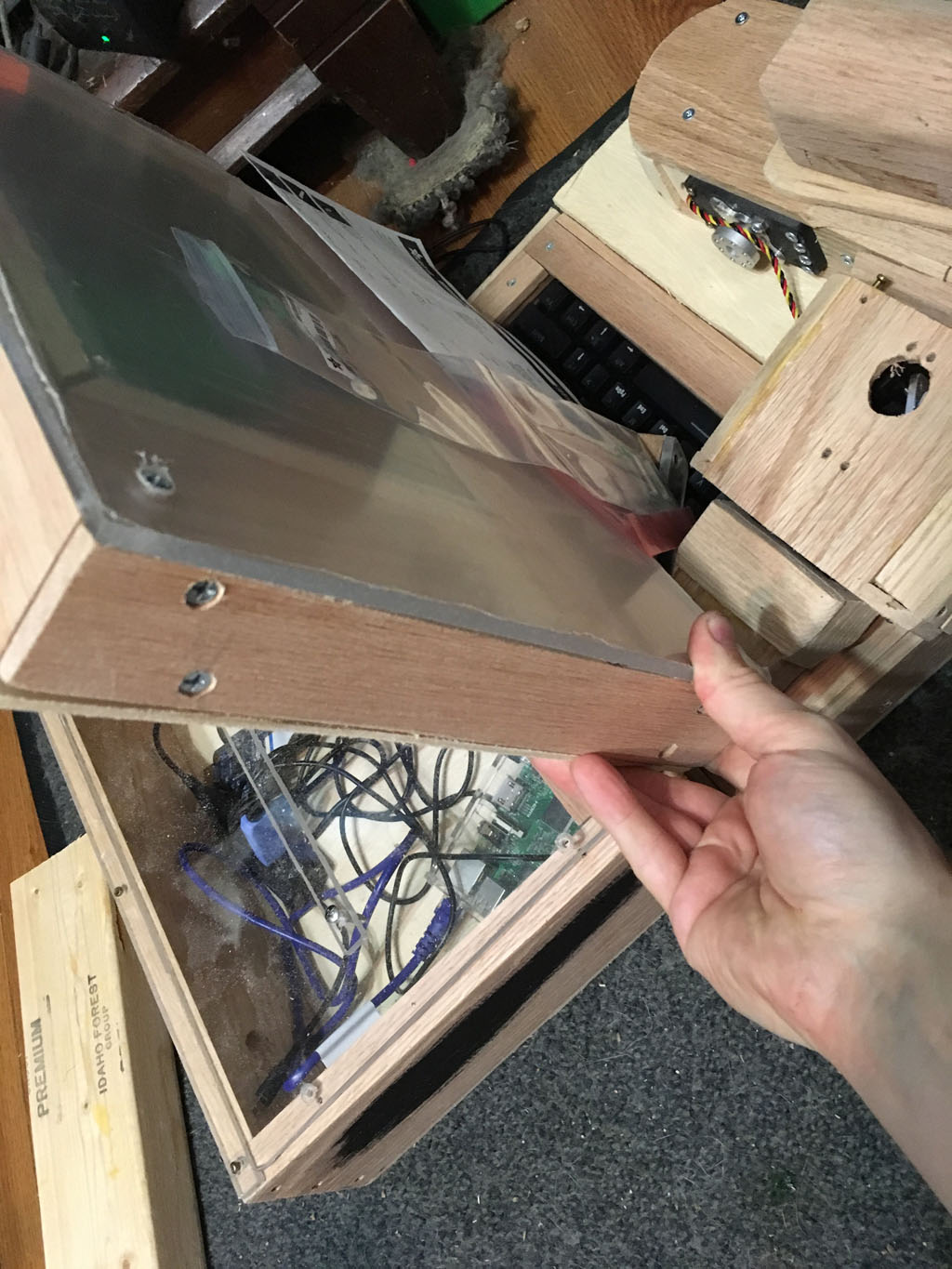 Thanks. I am thinking of painting the inside part white or just staining it. I think the see through acrylic top makes it look cooler. Was debating doing that on the back of the screen as well. Gives me a good view to troubleshoot if things get loose...