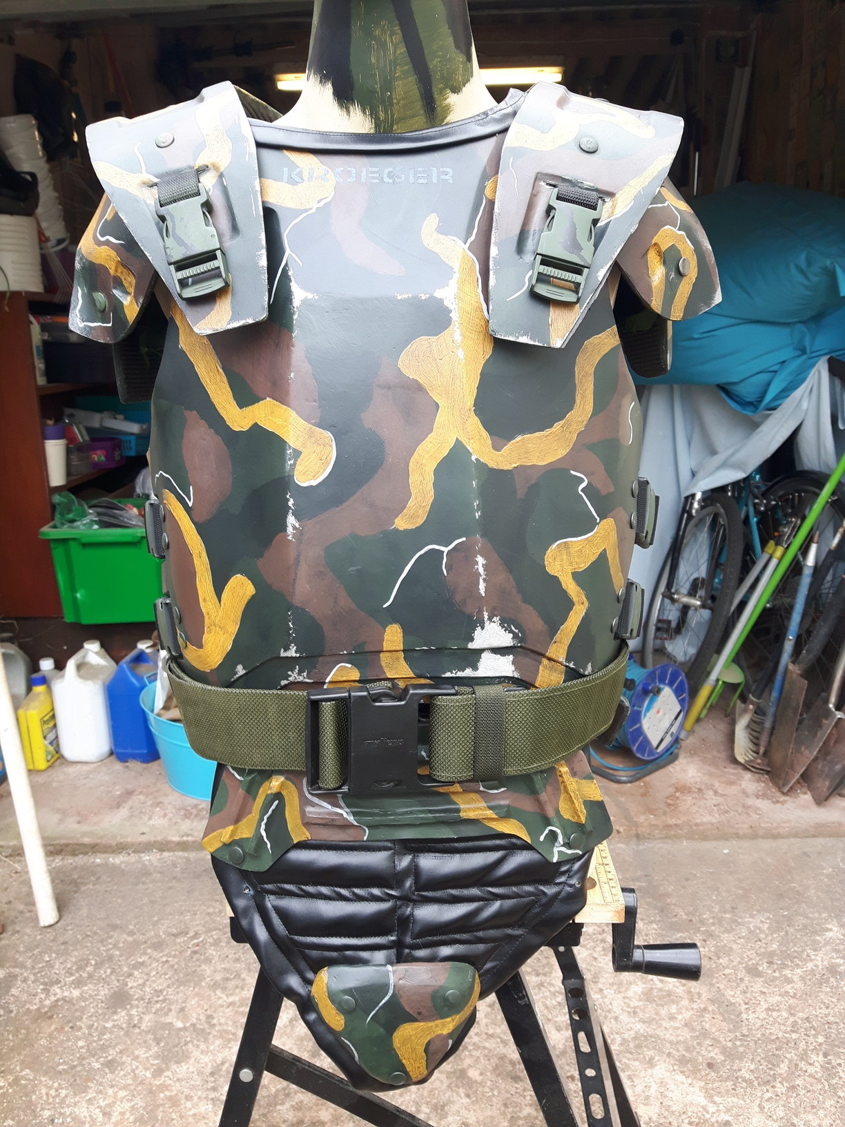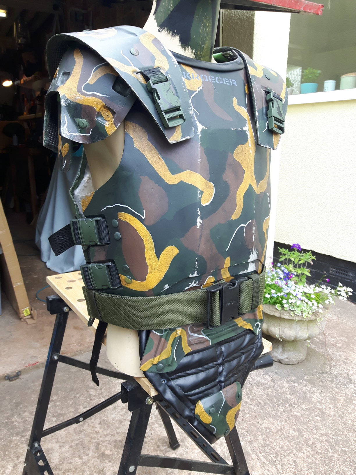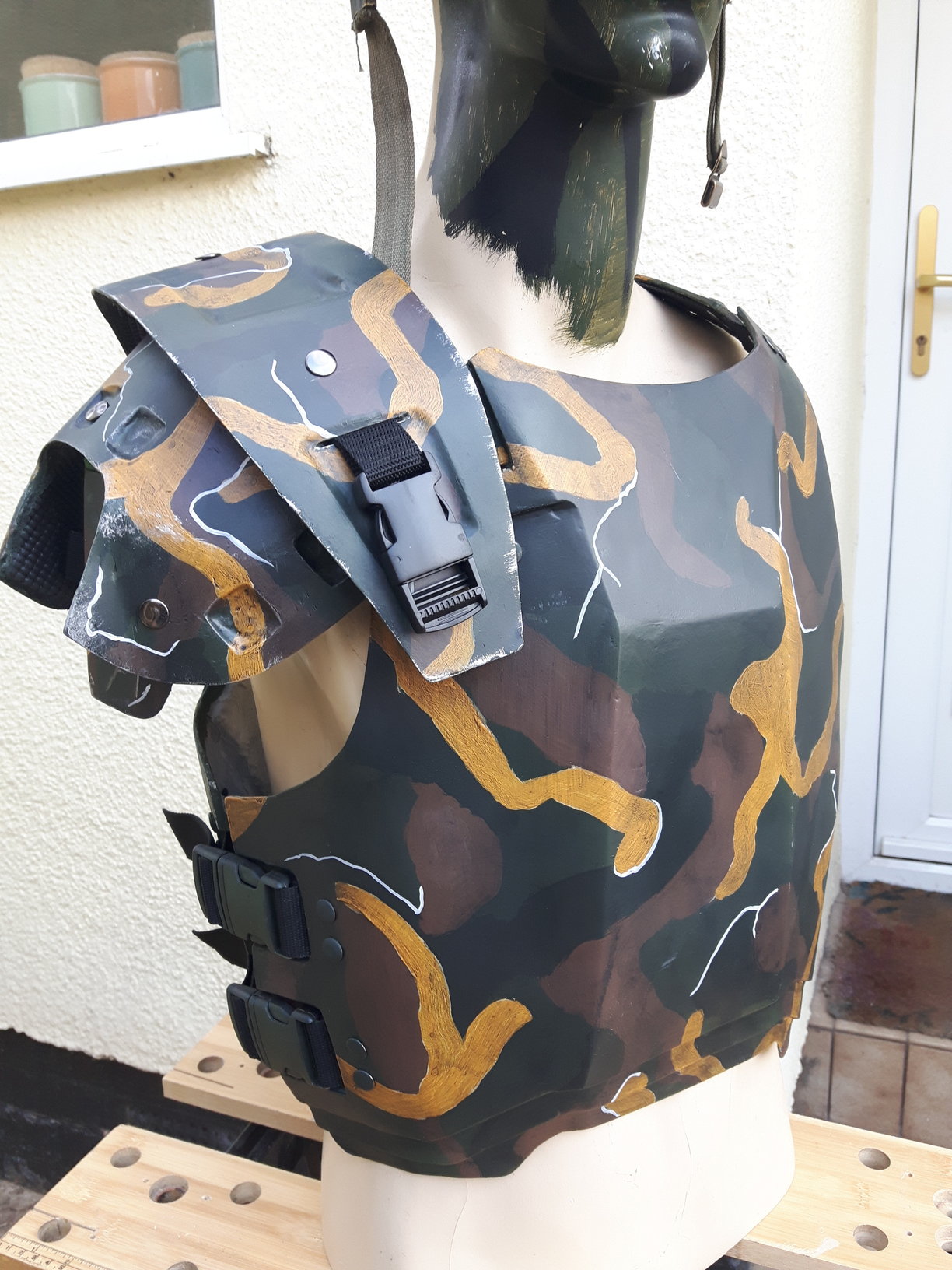 Other shoulder now complete :) Time to start on the webbing and the groin armour. Still awaiting the camera and ear pieces for the helmet too. Excuse the MTP but I have not got the proper BDUs yet.