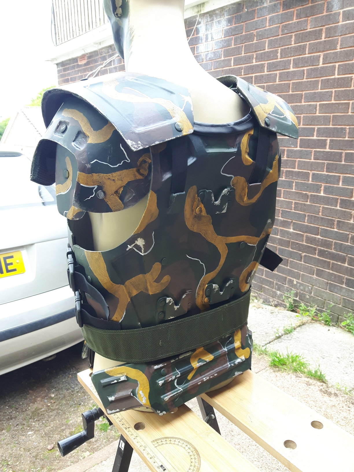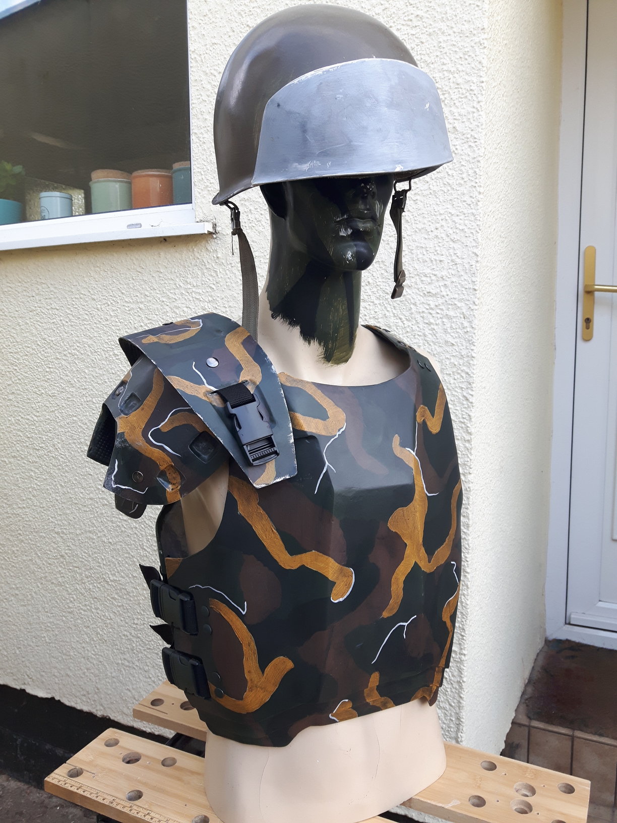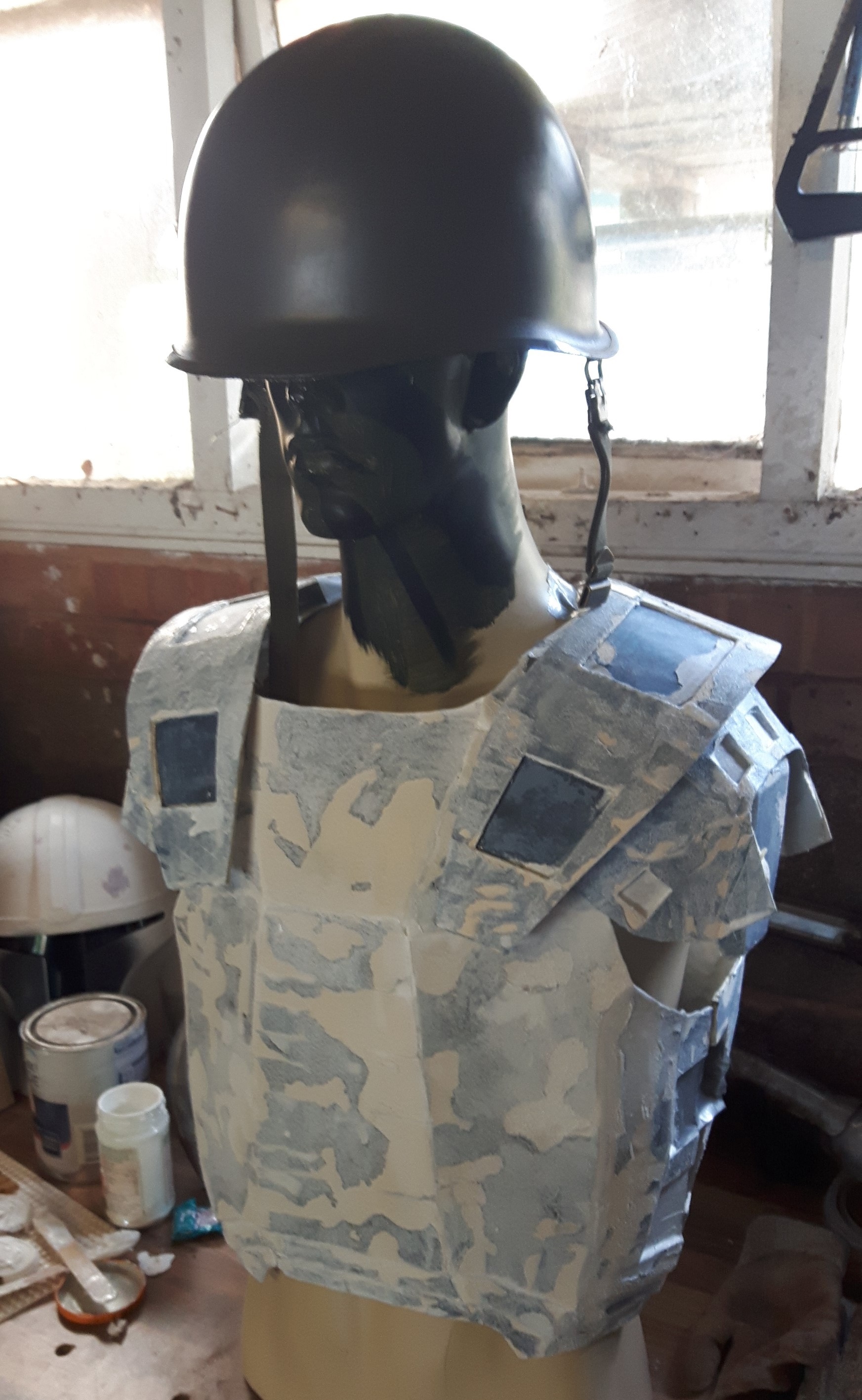 Other shoulder now complete :) Time to start on the webbing and the groin armour. Still awaiting the camera and ear pieces for the helmet too. Excuse the MTP but I have not got the proper BDUs yet.