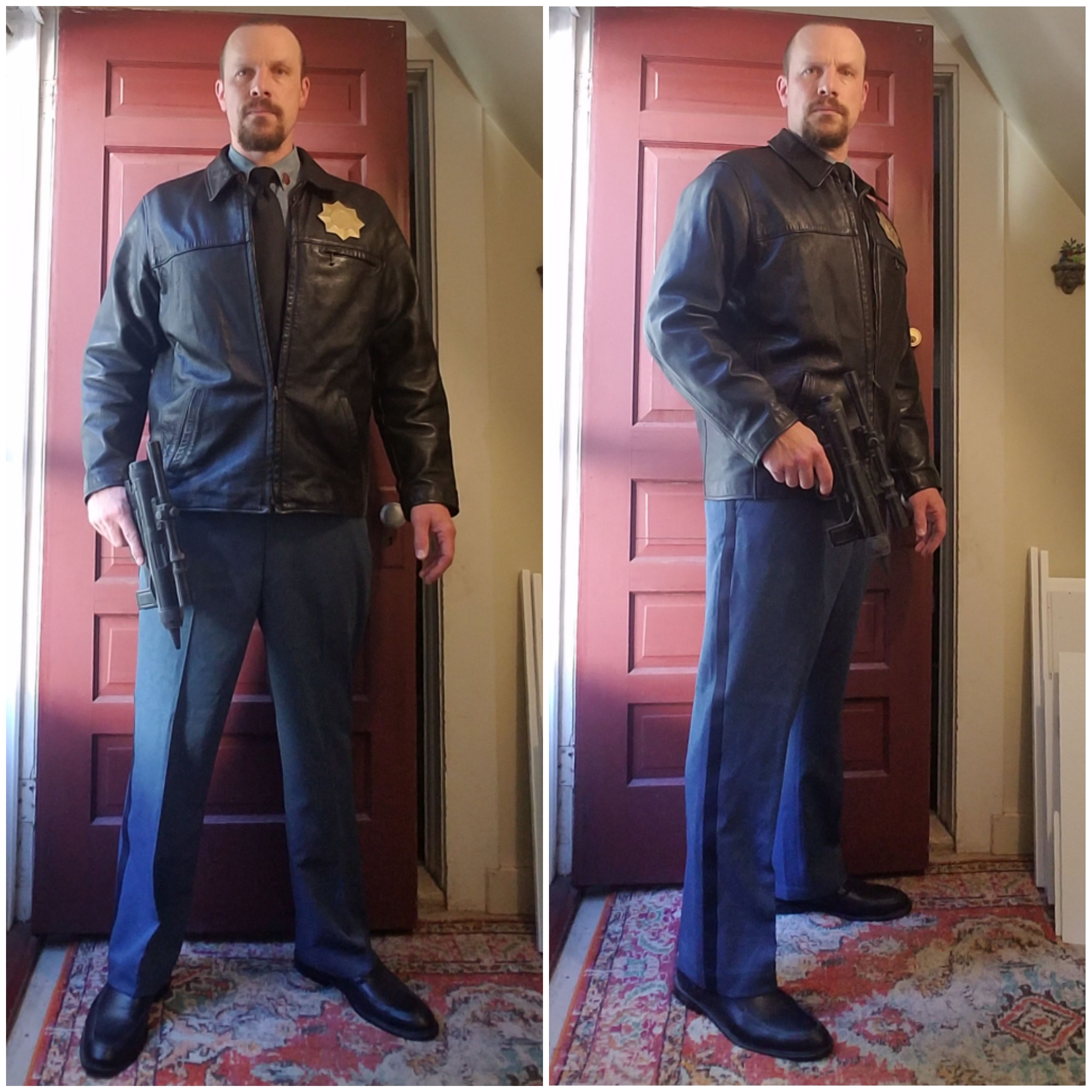 Everything in this build except the Marshal badge has come from my costume collection. I have a police uniform for another project, and the trousers are a good match.