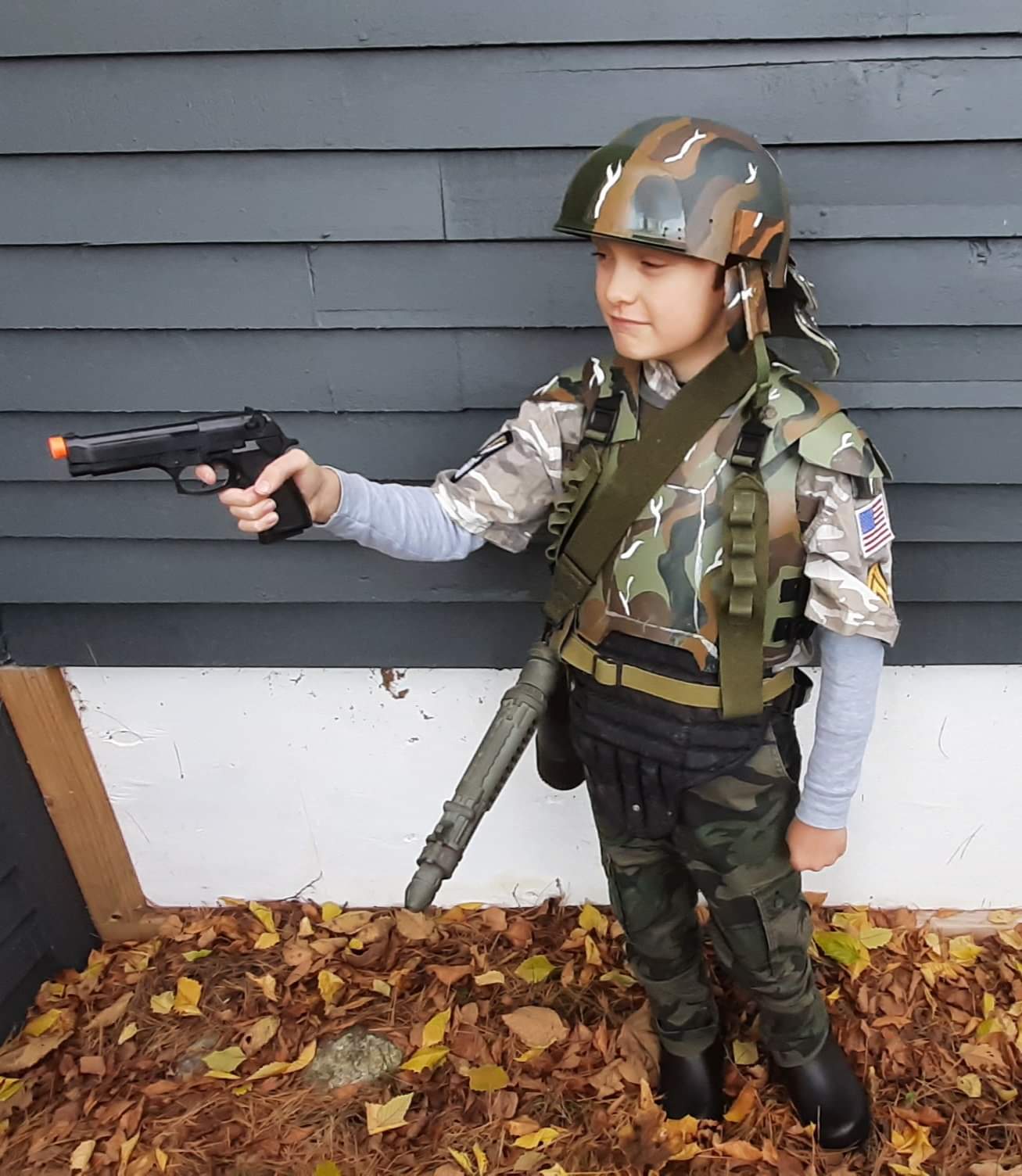 Some shots of my mini-Marine today. This was a great test drive for the armour, but next time hopefully we can find a better match for camo trousers and do the shin guards. He wants to add some graffiti so we'll do that too.