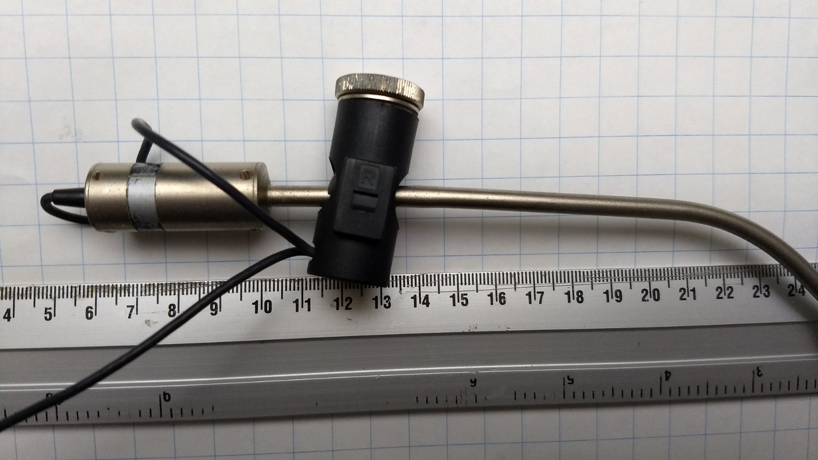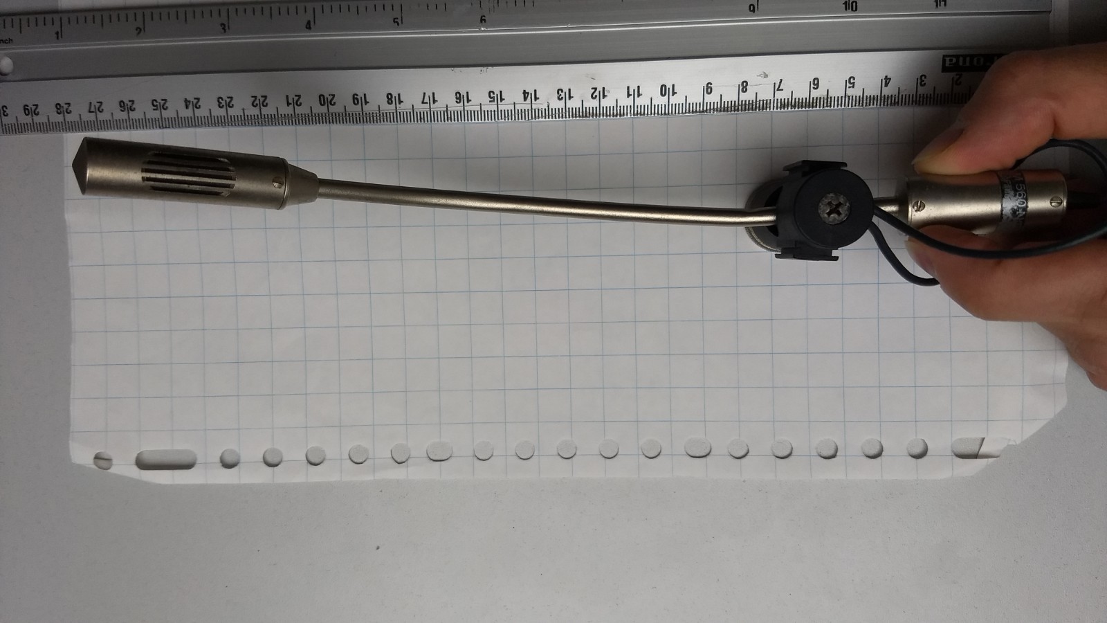 I am trying to think of ways to get more accurate measurements. Could you possibly take a photo of the microphone on top of a gridded paper with known grid size? I could be able to calculate the measurements from the photo. If you could at least get the bend and some of the straight parts on top of the paper.
