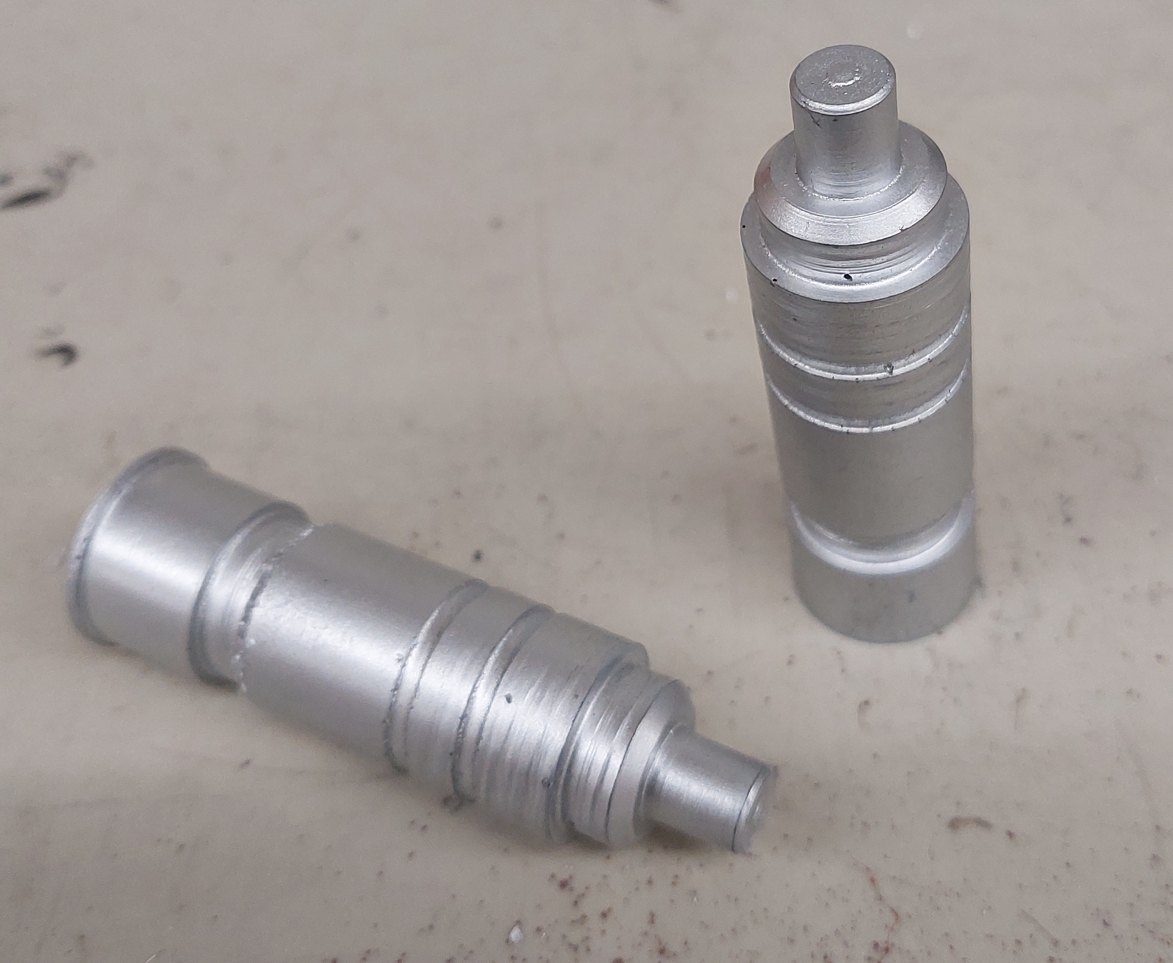 Use the lathe to create the new plunger(2 of them) out of Aluminium. 25×5×8mm