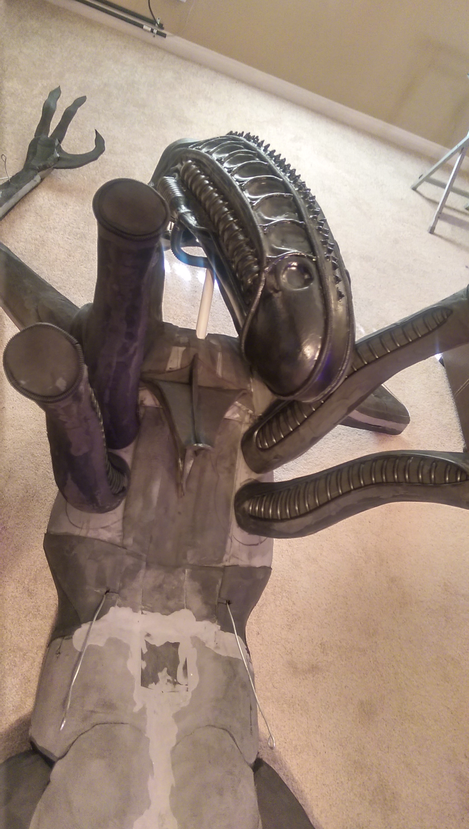 Thanks for the comments. My simple goal is for this to be the best Alien display in the whole world. Not counting the display at Stan Winstons of course. Since this is for display and not a film I plan to take my time and and get it they way I like it. Nothing is final yet. Even the head is just a base coat of paint so I can get a good look at it. I've already changed some things on it.