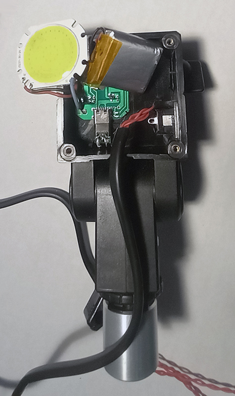 After dismantling the Reflecta, I cut a piece of plexi, the correct shape to sit down in the lamp head, resting on the existing posts.