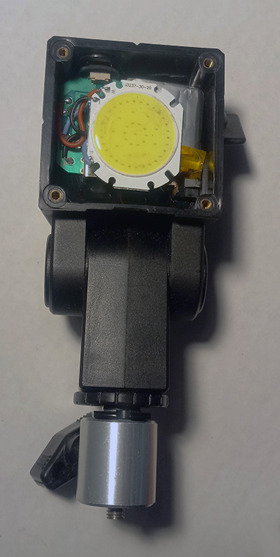 Pushing the button repeatedly, the light switches from "High- Medium- Low- Red- Red blinking".